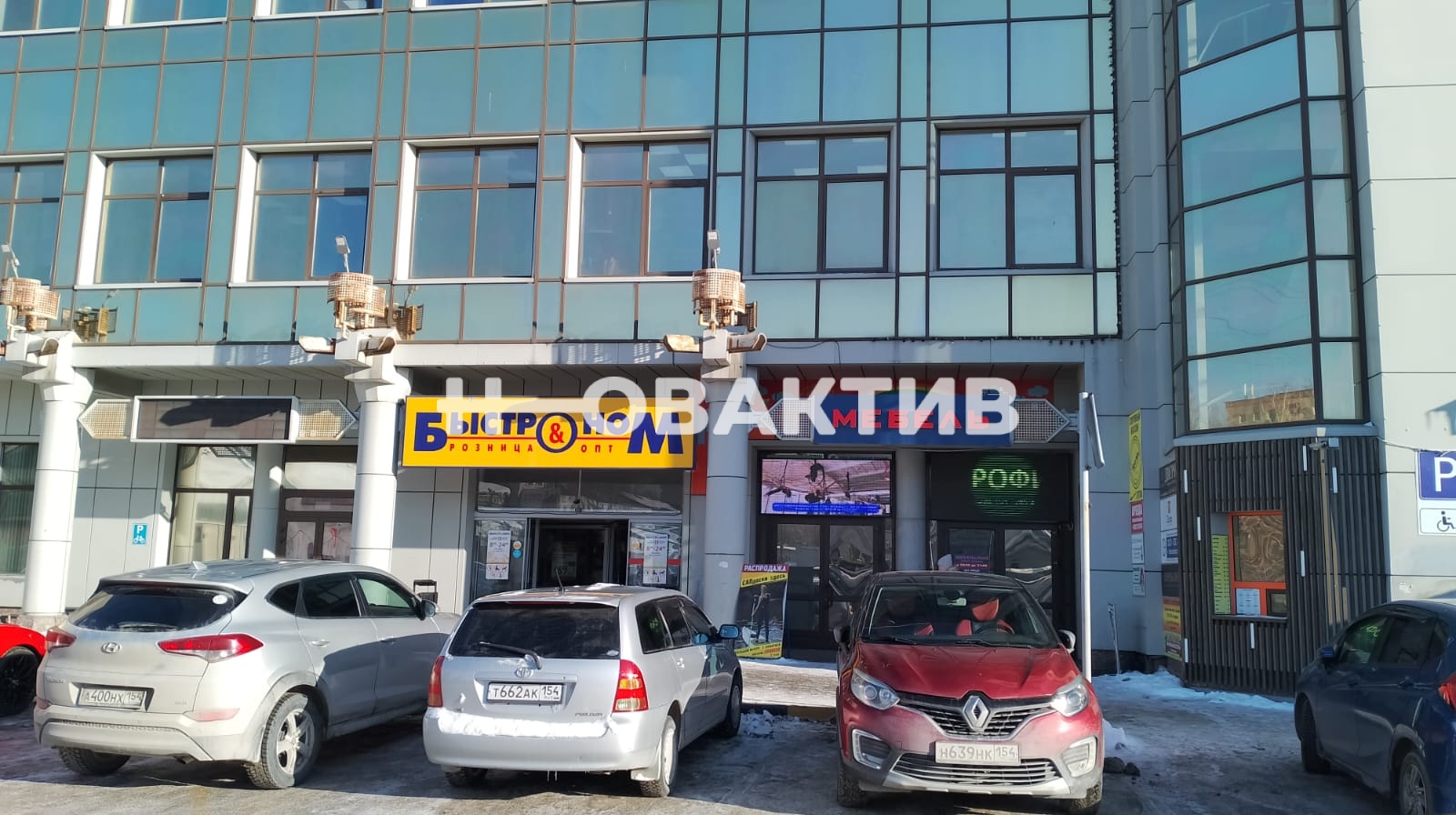На 1 этаже расположены супермаркет "Быстроном", медицинский центр "Клиника Крови", Банкетный зал "Белый зал La Creme", кафе "Вкусно&Сытно".