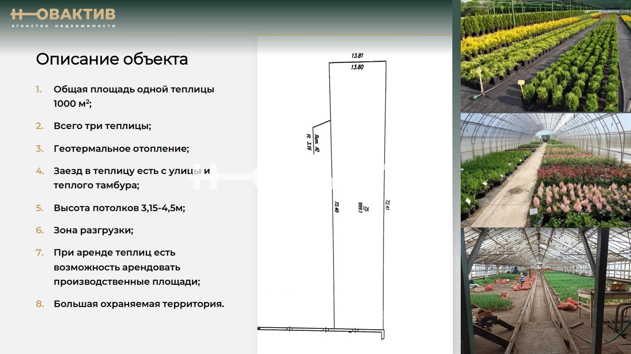 1.3000м2 тепличного комплекса с геотермальным обогревом;