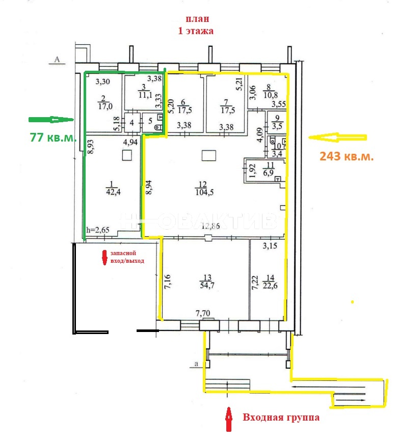 · Возможность как арендовать полностью 317 кв. м., так и по отдельности: 243 кв. м. и 77 кв. м. У каждого помещения есть отдельный вход.