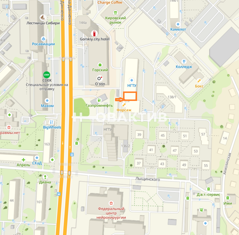 ✔В окружении расположены: корпуса НГТУ, отель «Gorskiy City», Новосибирский колледж олимпийского резерва, Кировского рынка,