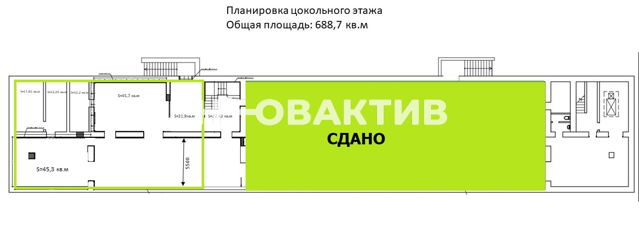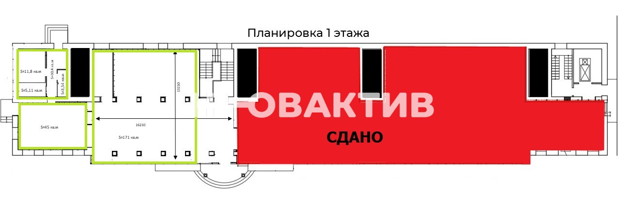 Пуcтая площадь на 1 этаже - 289 кв.м