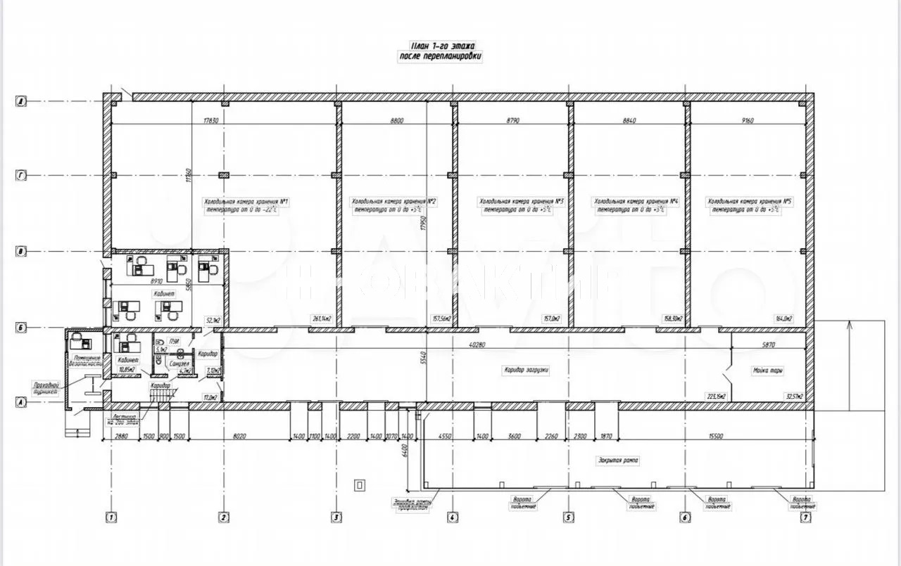 Склад после реконструкции, площадью 1522.4 м2 с высотой потолков 6 м2