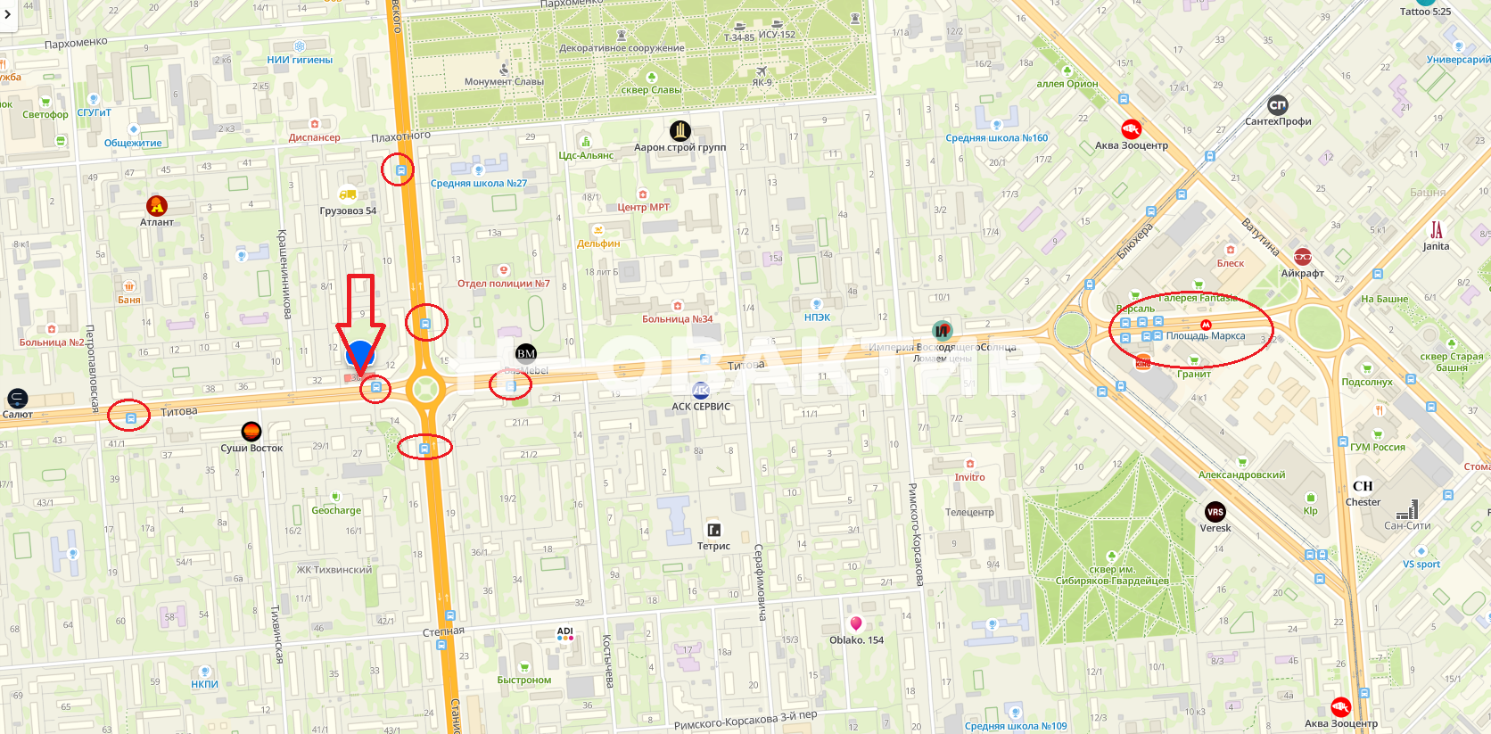 · В шаговой доступности маршрутные автобусы, Метро пл.Маркса
