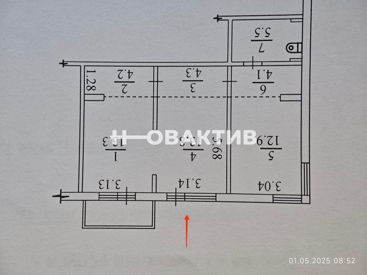 Общая плoщaдь помeщeния 58.6 кв.м .