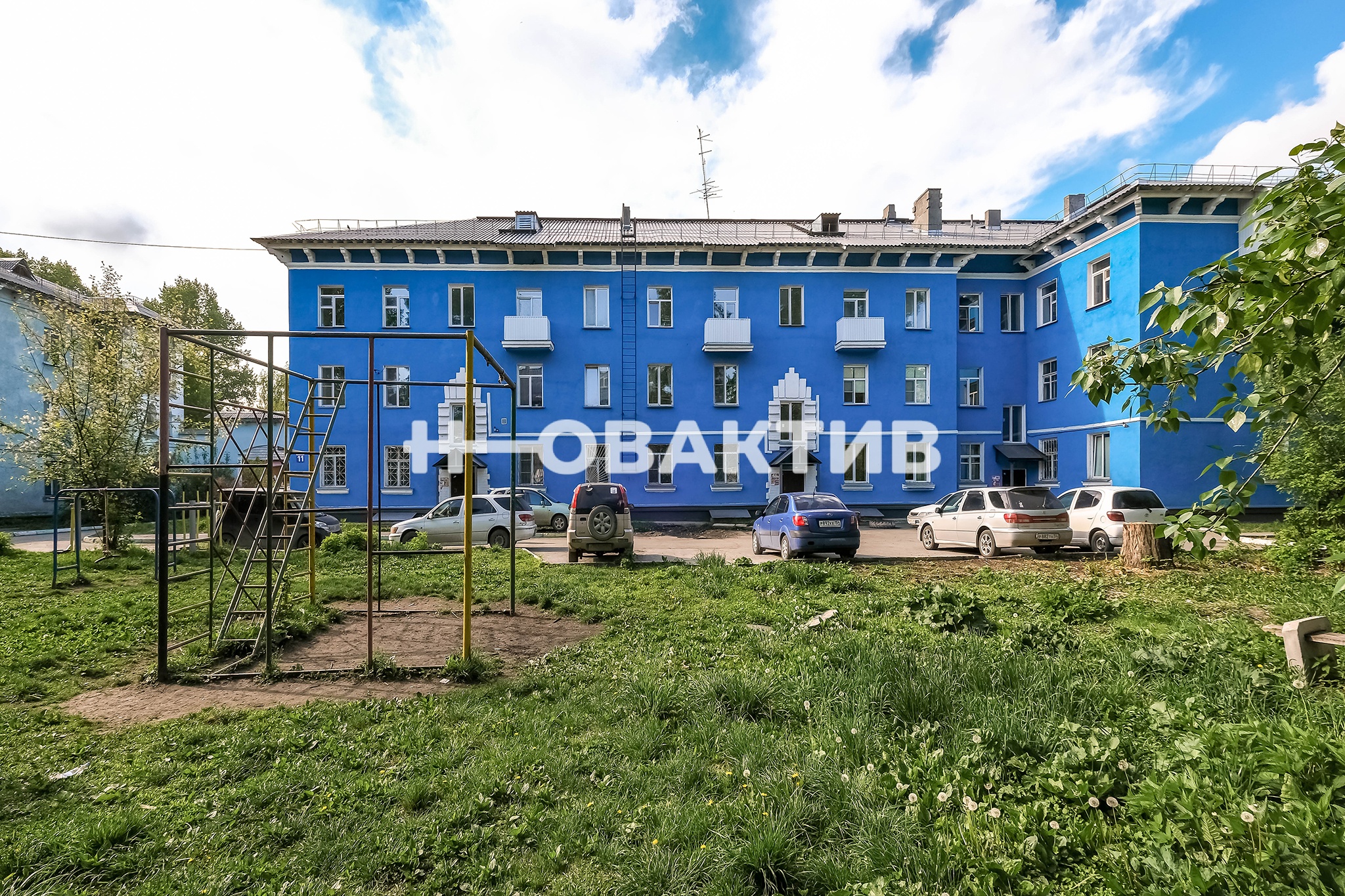 Во дворе дома детская площадка и наземная парковка.