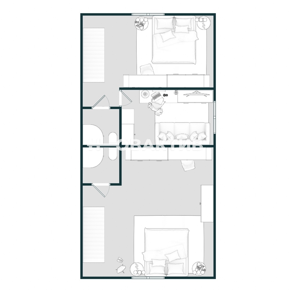Вторая половина дома зеркальна первой, кроме веранды и второго этажа, на втором этаже разделение на 2 спальни.