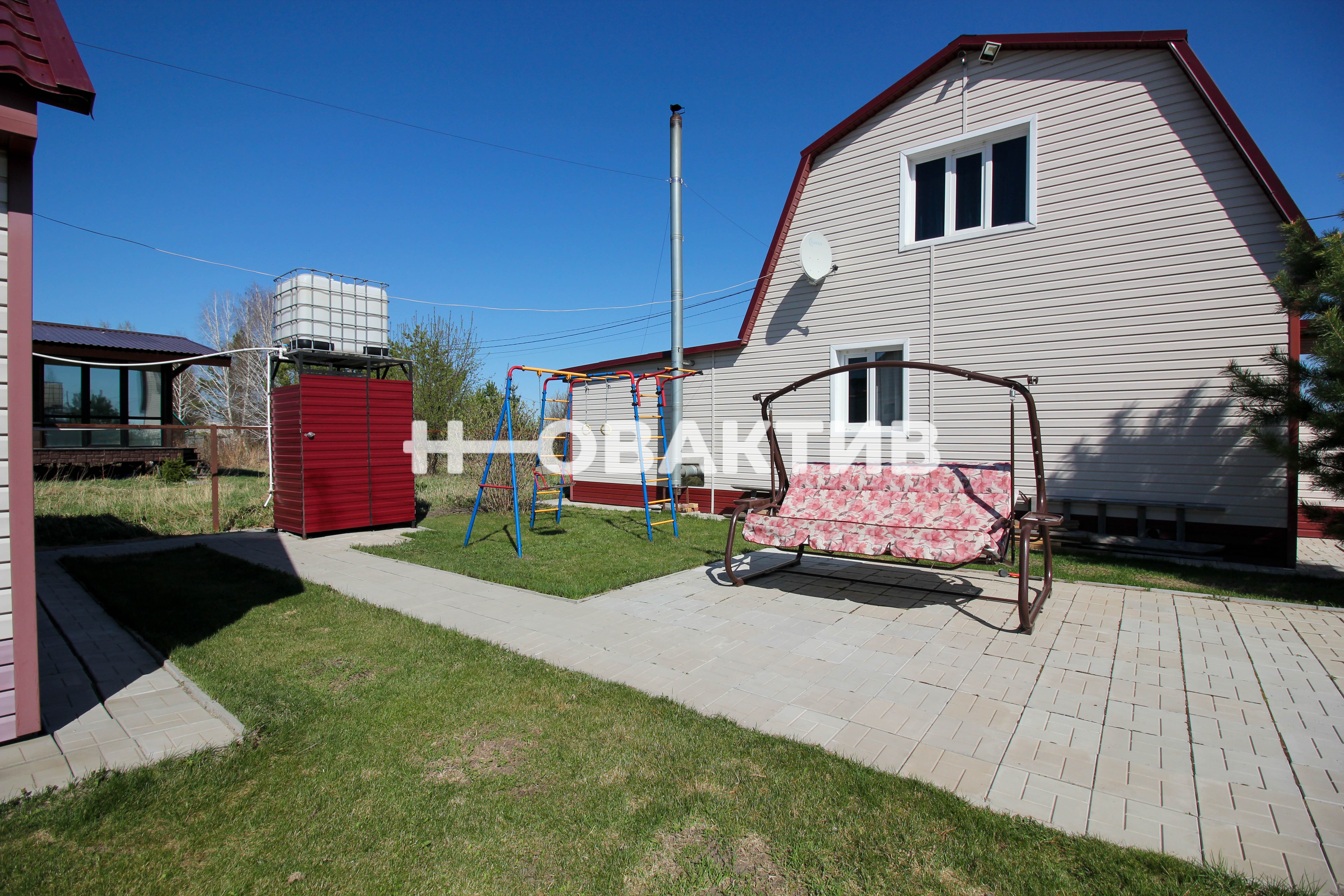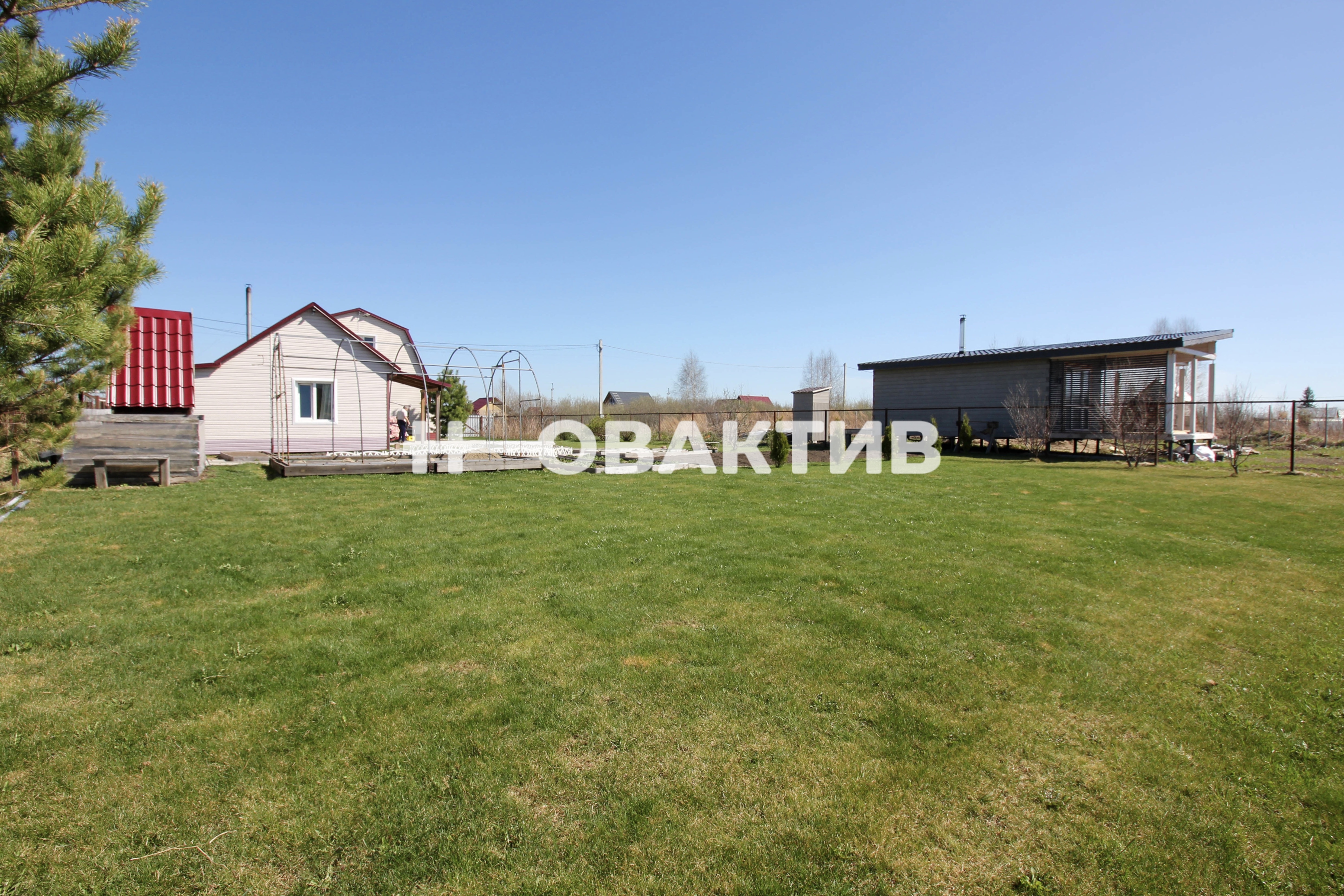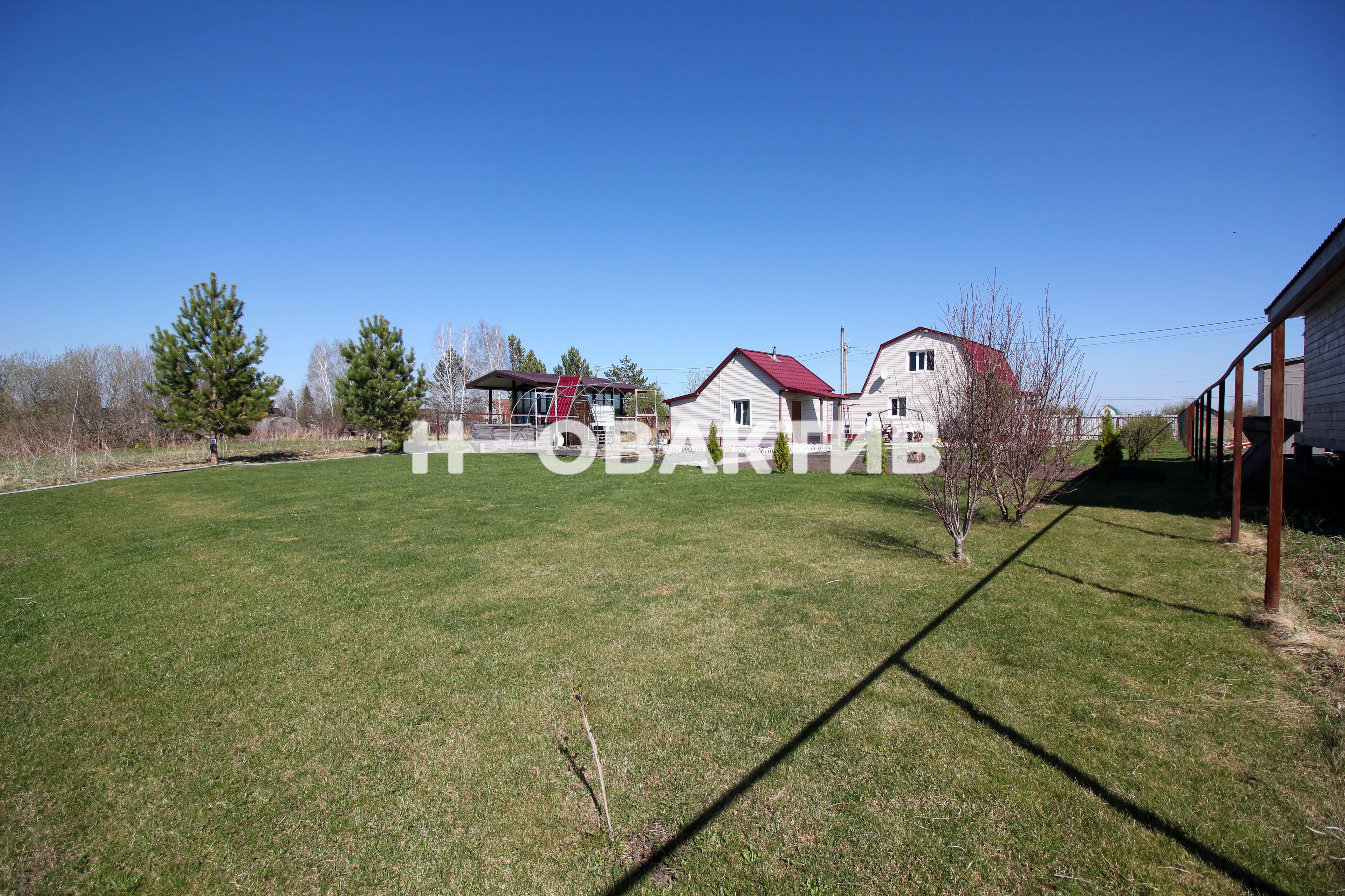 На участке имеется туалет, летний душ, детский спортивный комплекс, теплица, летняя качелька, бассейн размером 2,5*5 м. На участке посажены плодово- ягодные растения, цветы, сосны, туи.