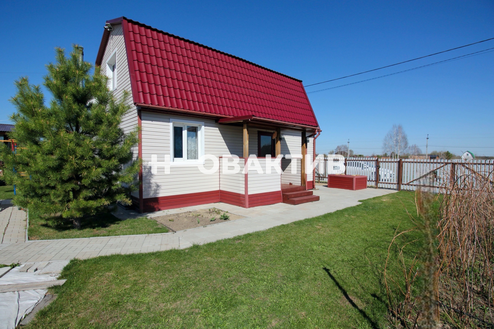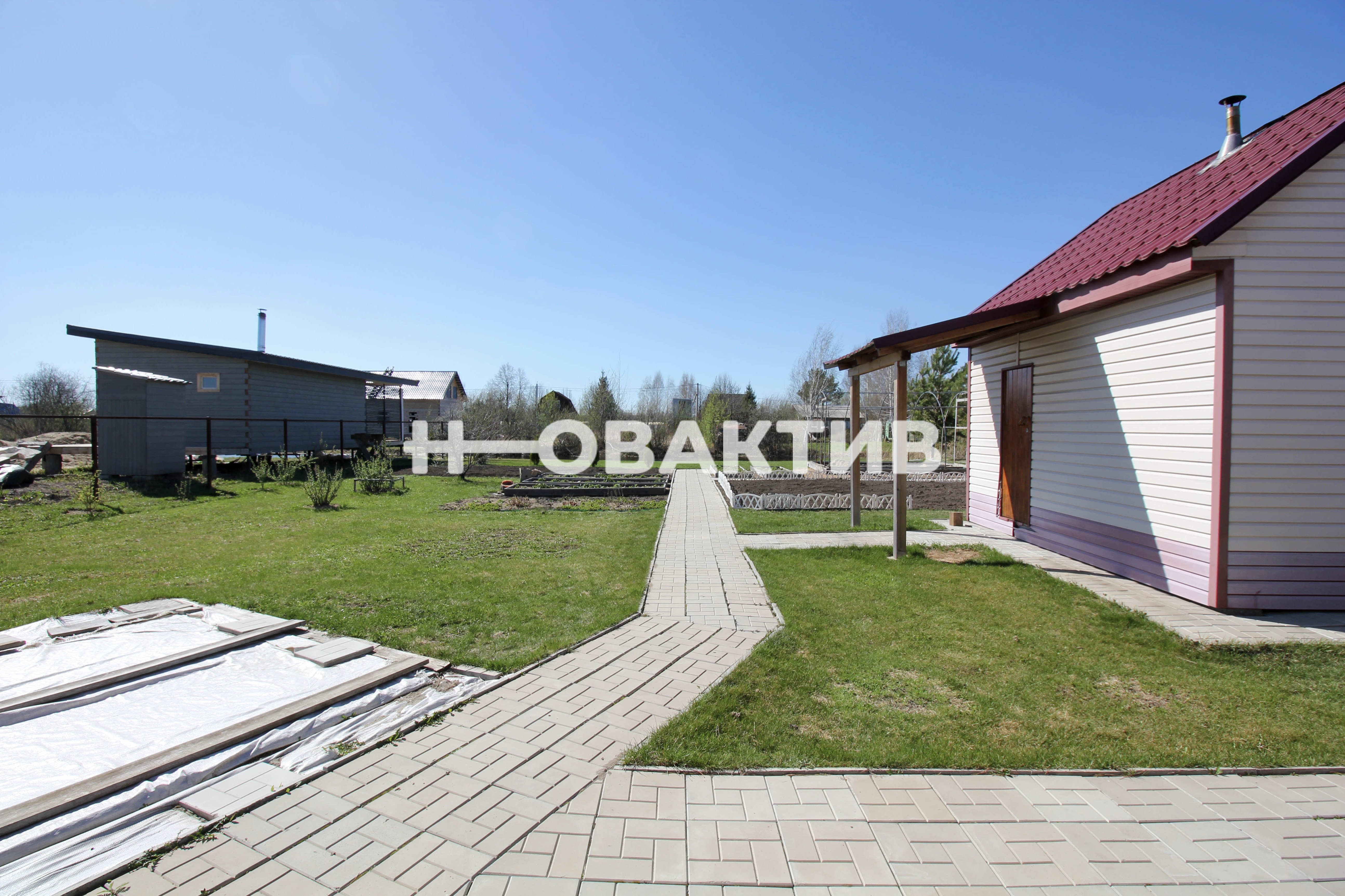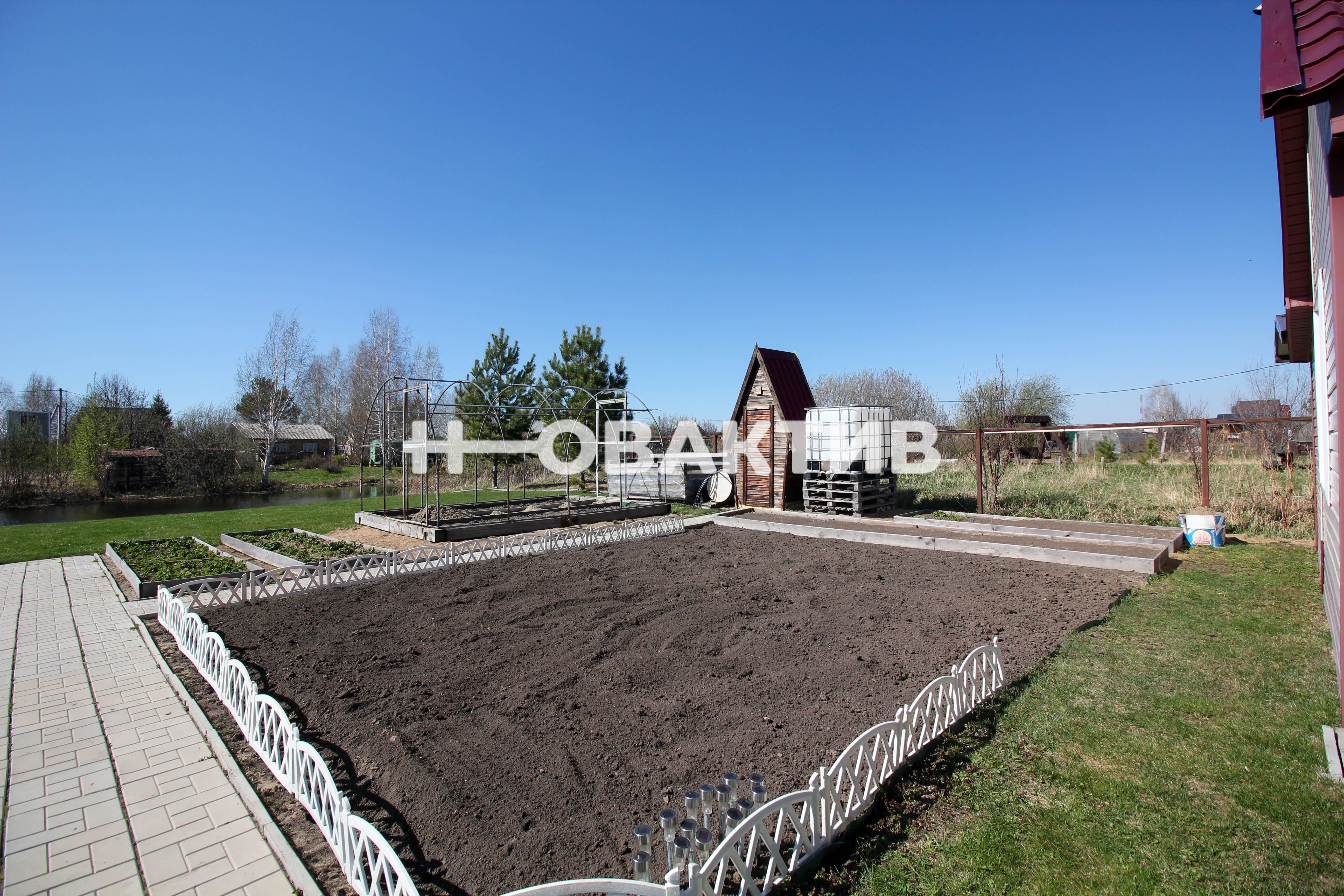 На участке имеется туалет, летний душ, детский спортивный комплекс, теплица, летняя качелька, бассейн размером 2,5*5 м. На участке посажены плодово- ягодные растения, цветы, сосны, туи.