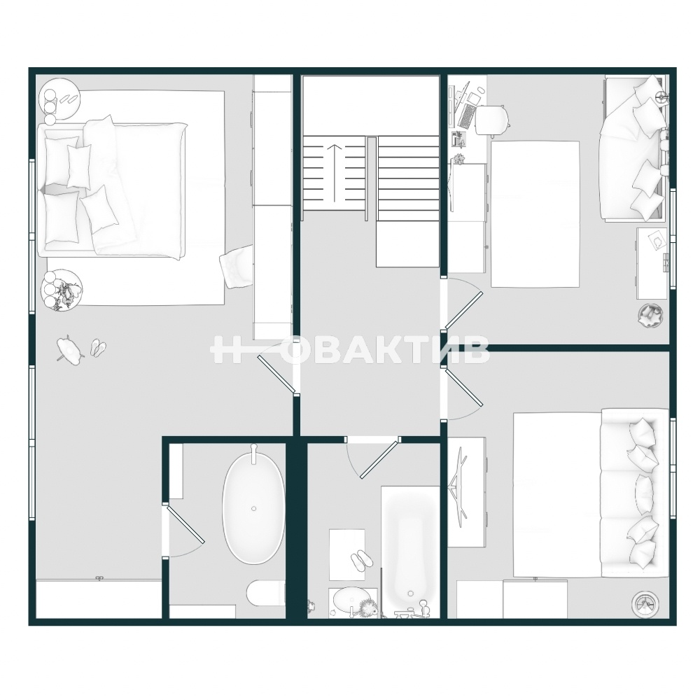 2 этаж: спальня с санузлом, 2 спальни, санузел