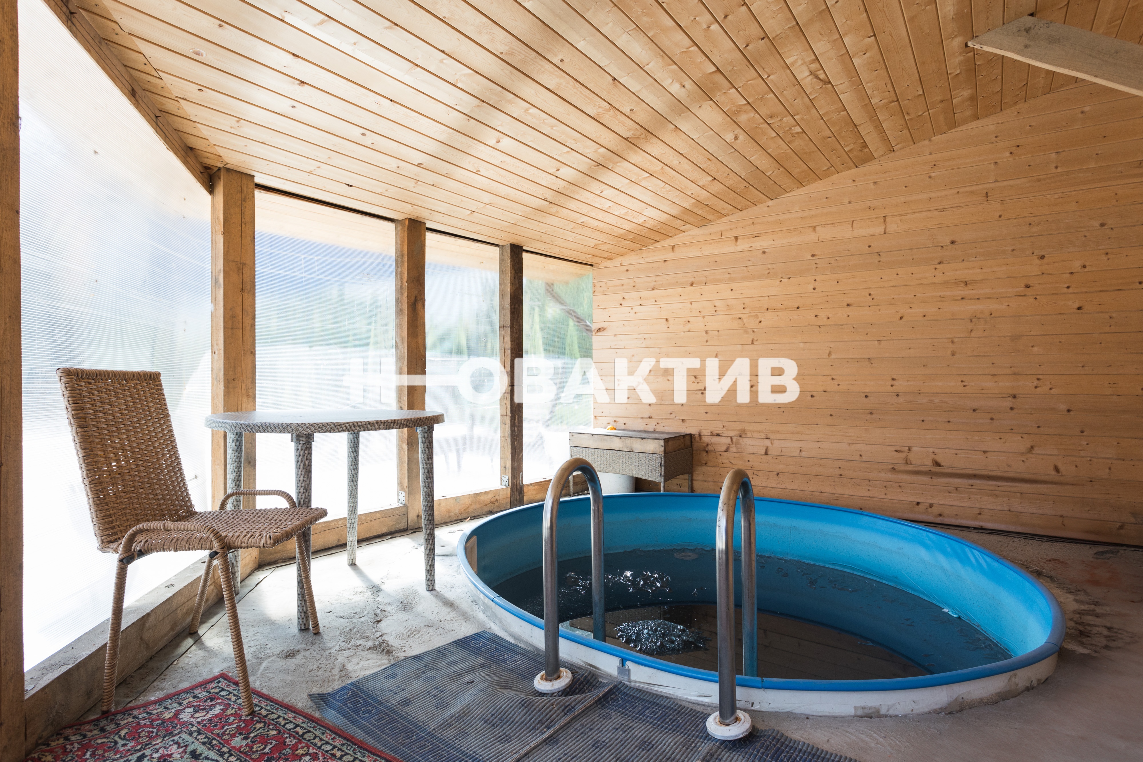 На участке расположена баня, бассейн с подогревом и системой фильтрации, беседка с мангальной зоной. Хоз. помещение для хранения