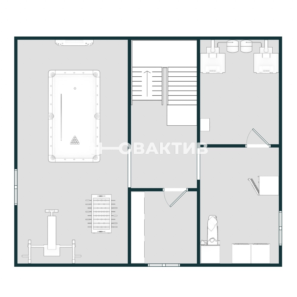 Цоколь: овощехранилище (кладовая), спортивный зал, котельная, комната свободного назначения (мастерская)