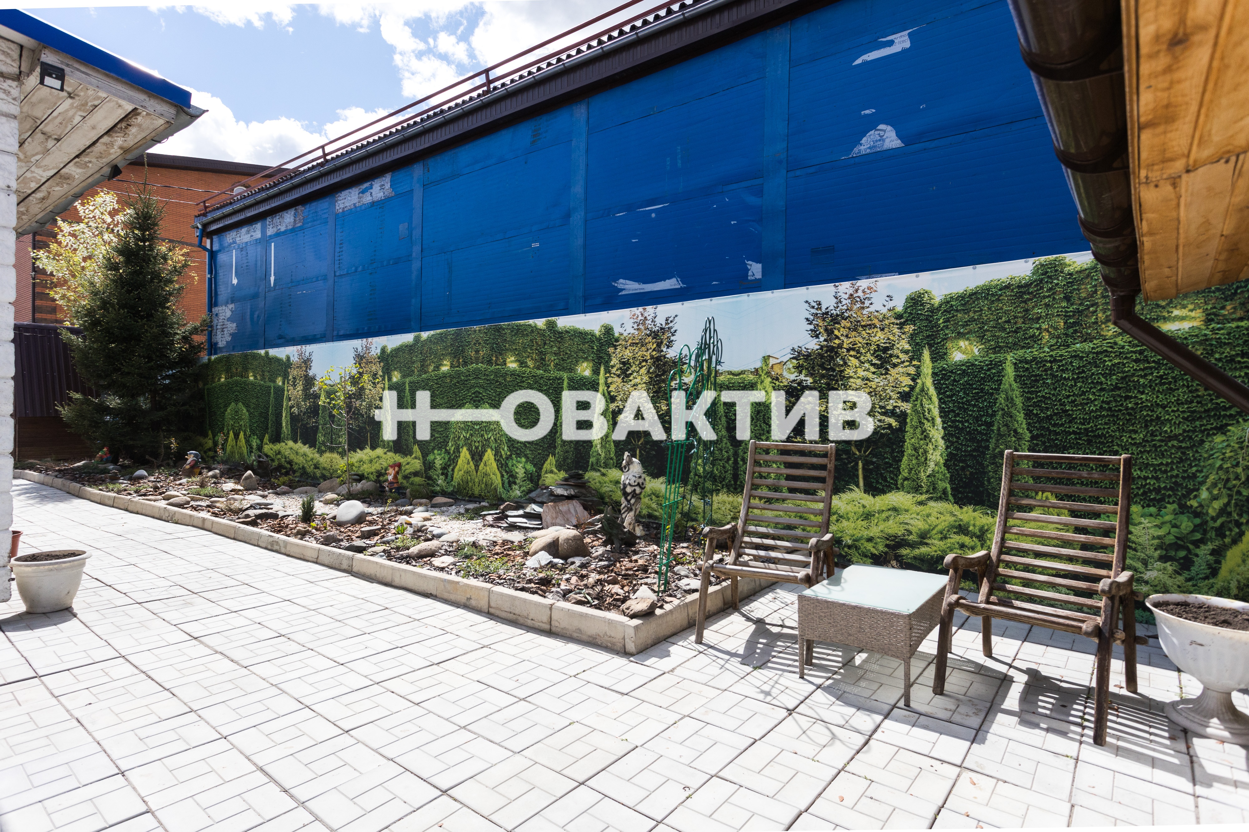 Ухоженная территория с ландшафтным дизайном, плитка тротуарная по всей территории