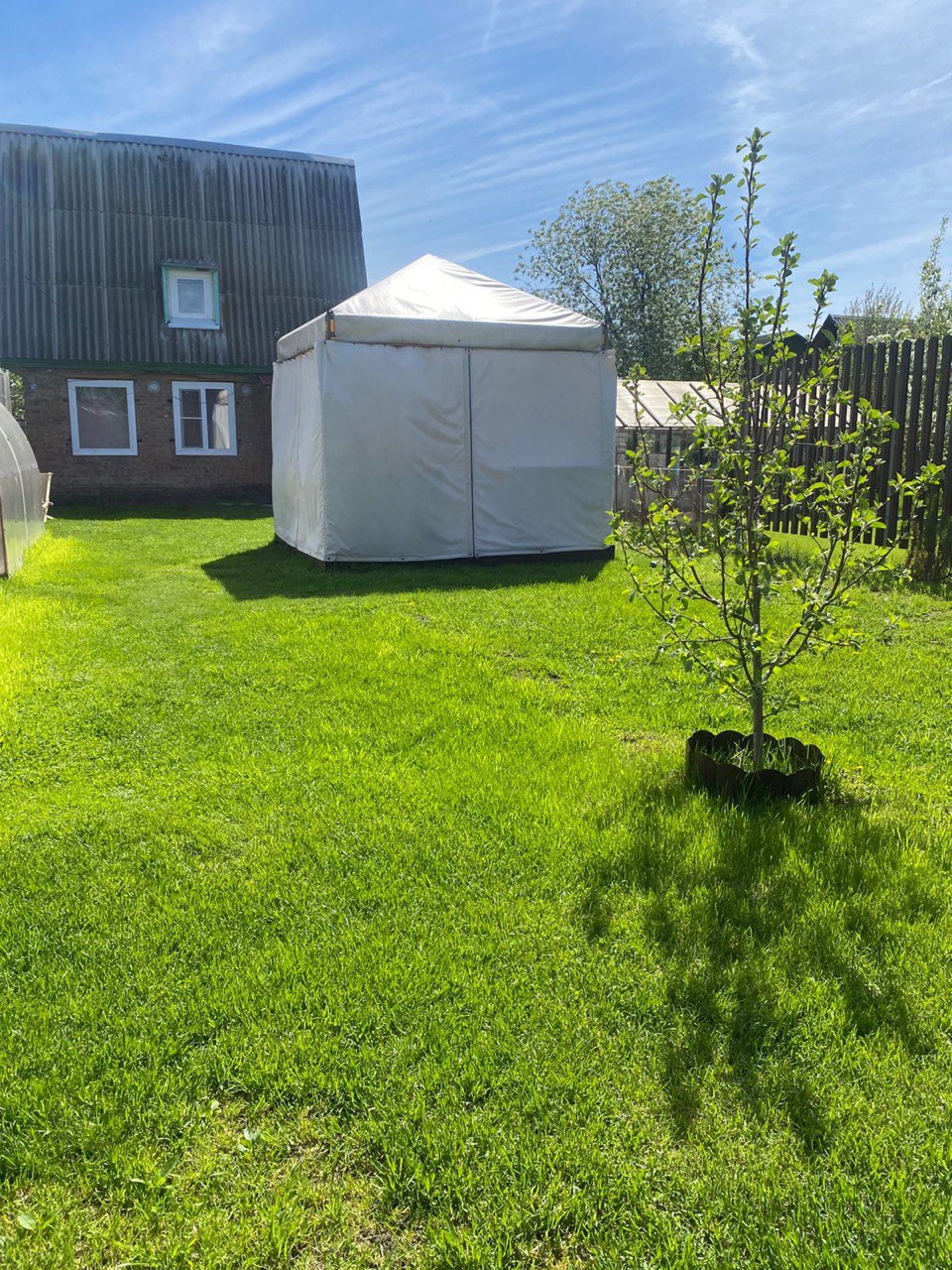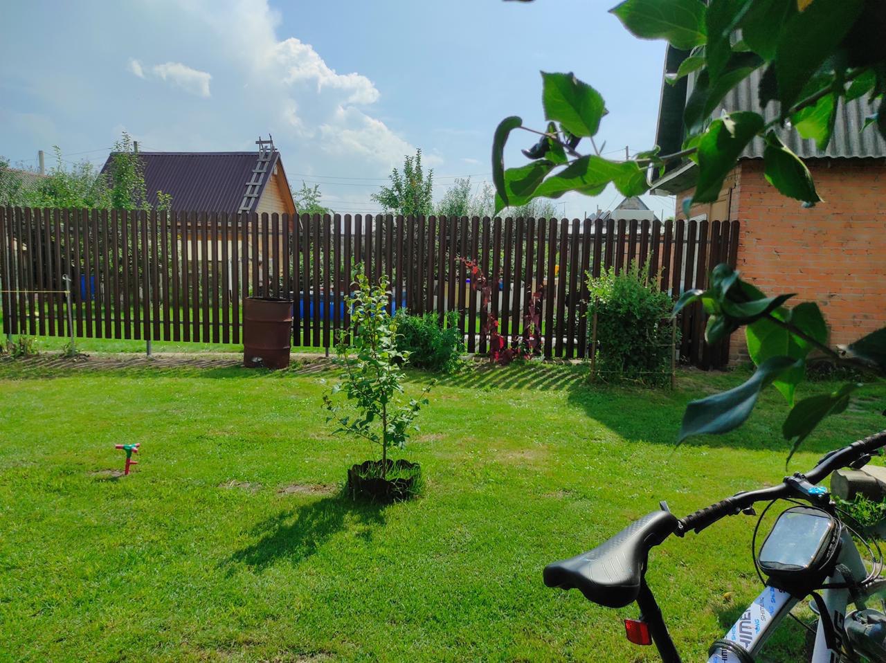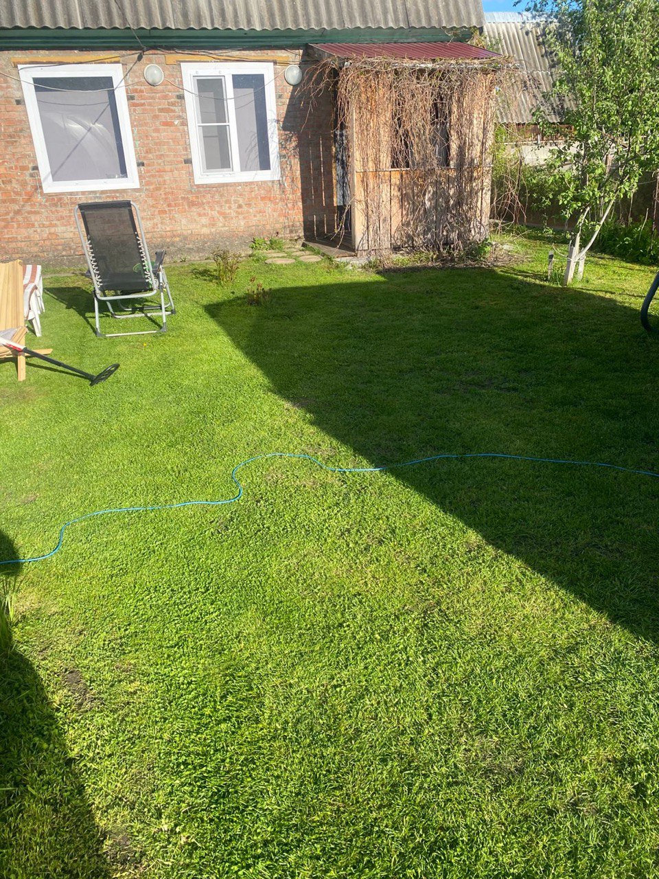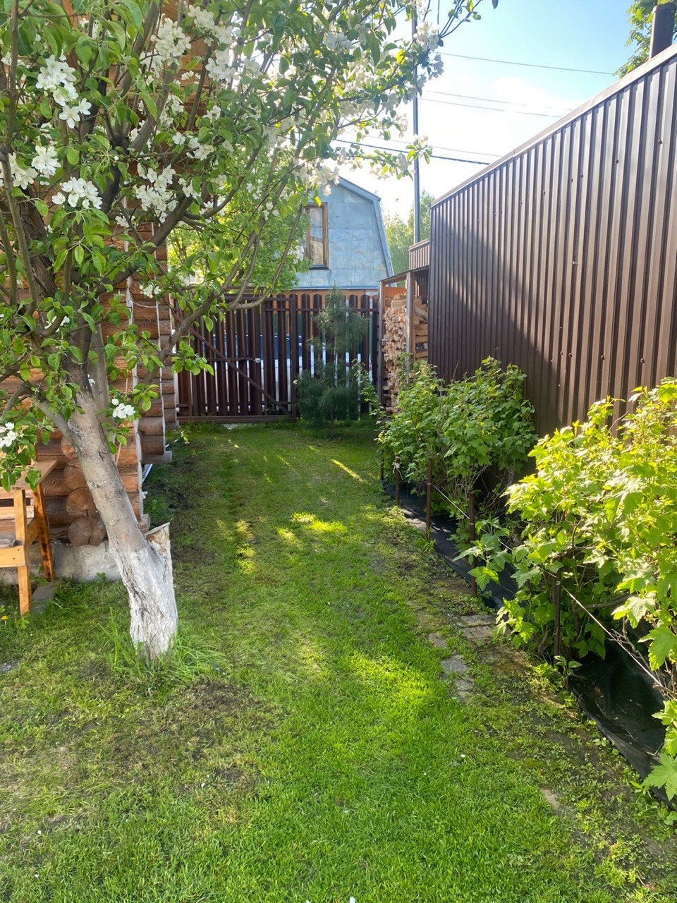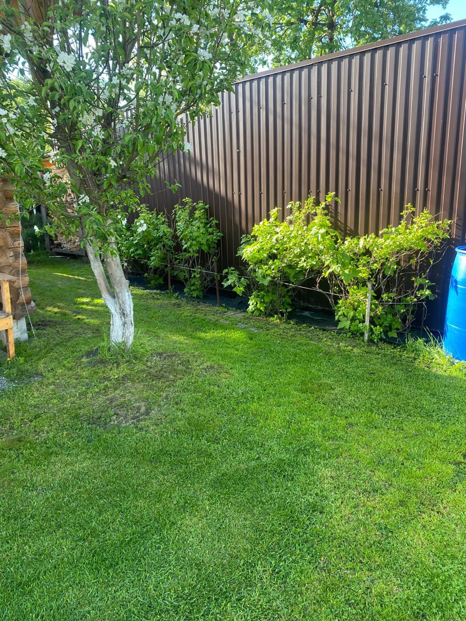 Участок: Ровный ухоженный газон. Плодоносящие деревья и кустарники: вишня, яблони, абрикос, ежевика, смородина (черная, белая, красная), жимолость, кедр.