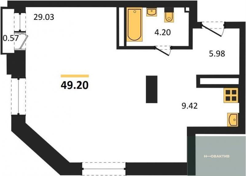 - Общая площадь 49.2 м²