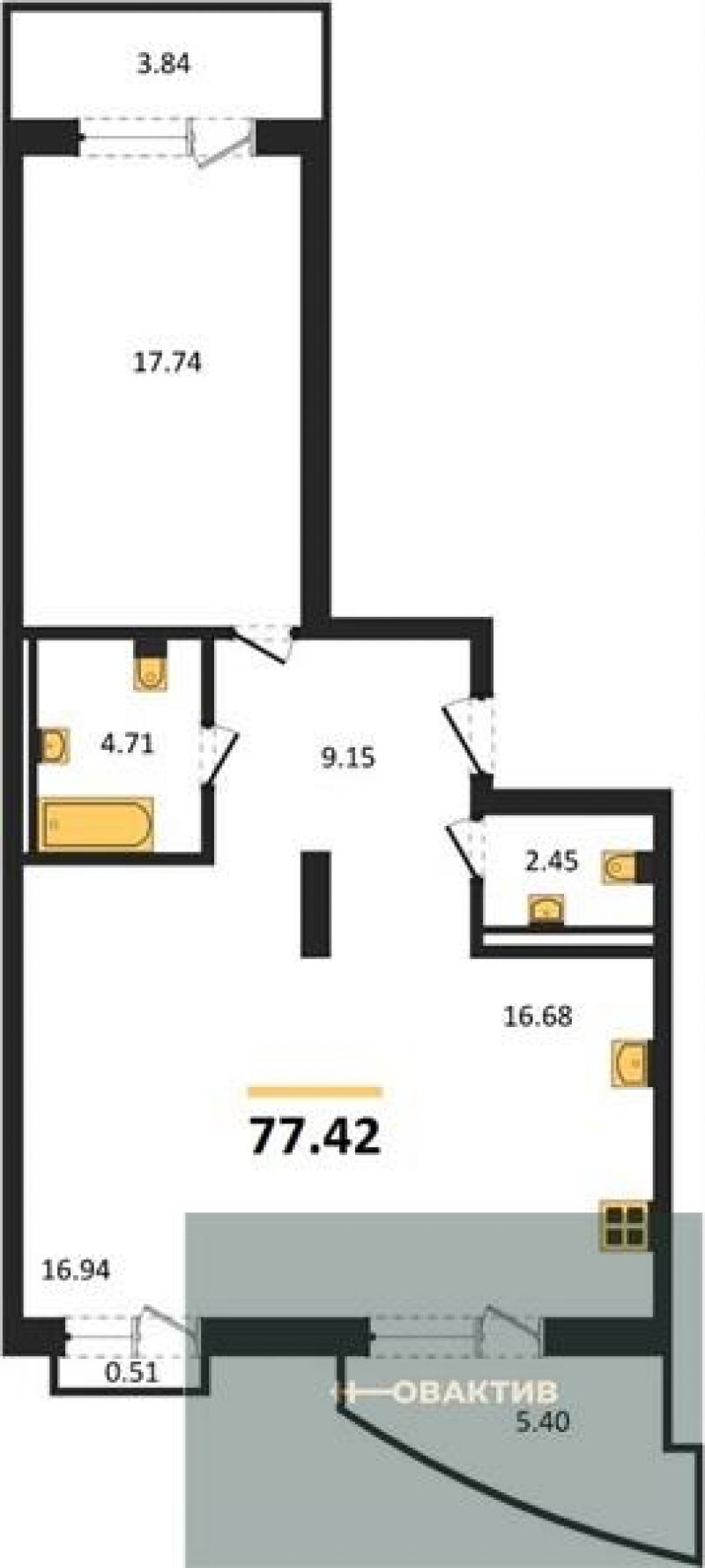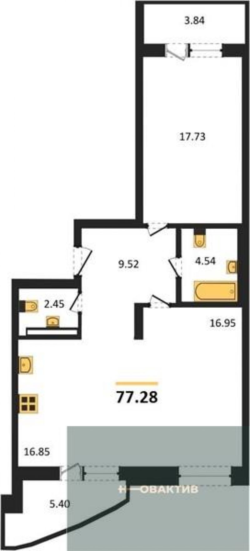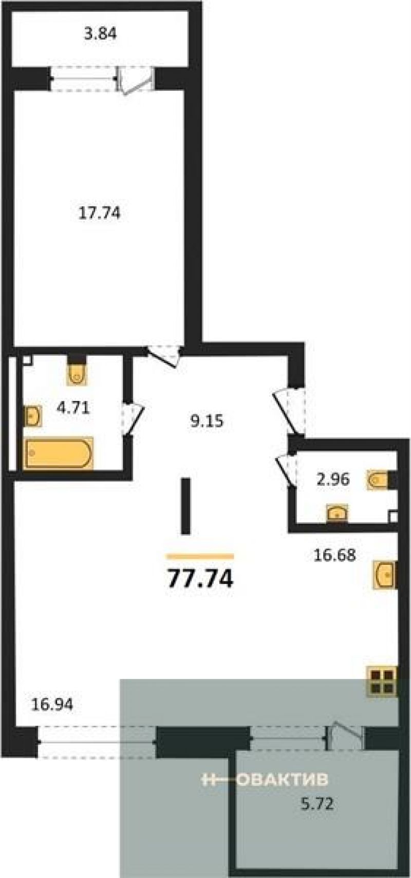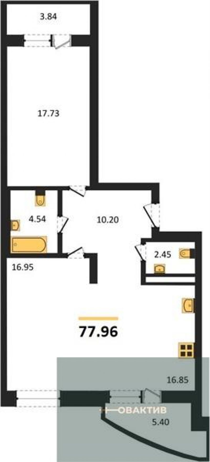 - Общая площадь 77.96 м²