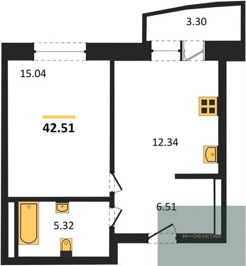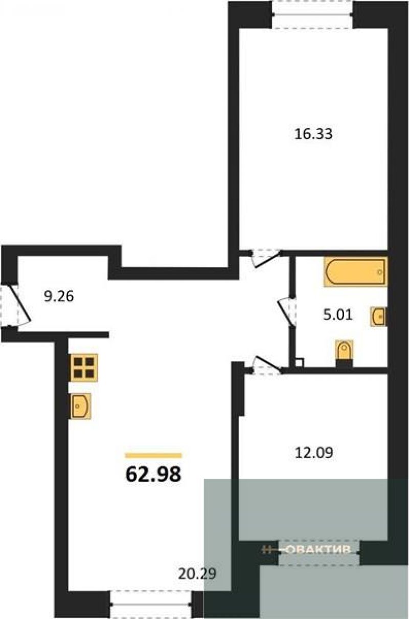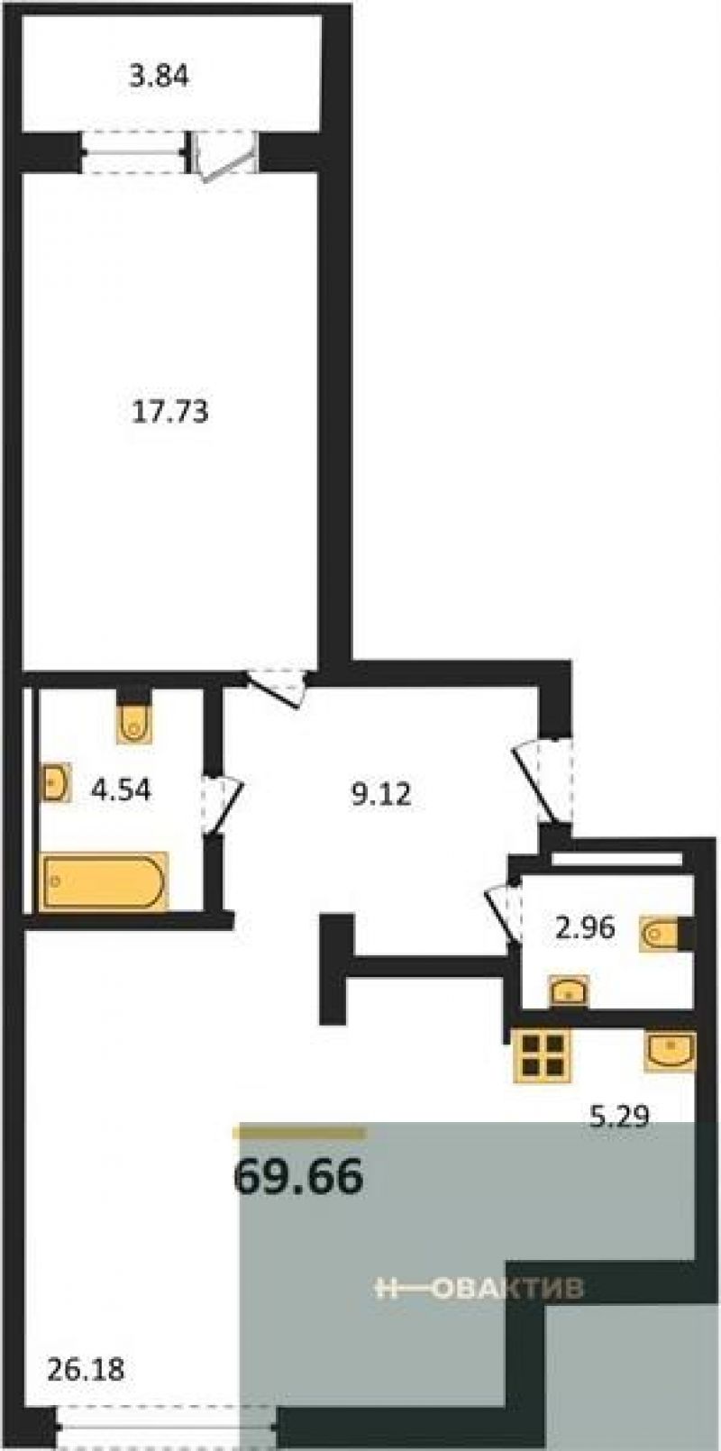 - Жилая площадь 26.33 м²