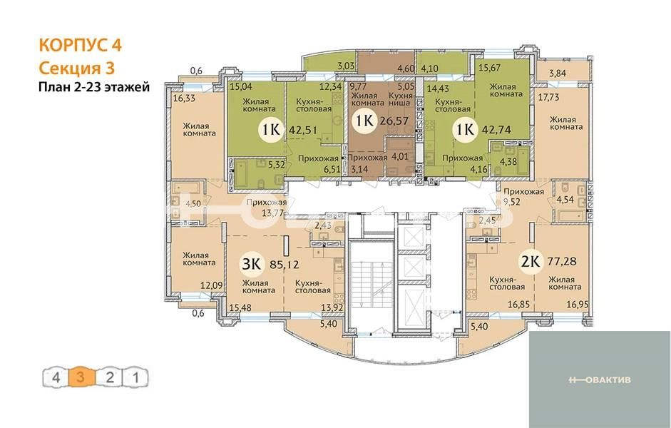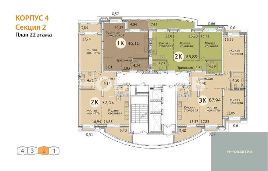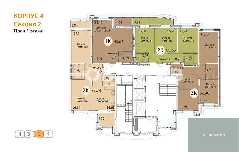 Квартира: 2 к 77,96 кв.м., 2 этаж в комплексе Заельцовский New, 3 очередь, корп.4, сдача: 4кв. , этажей: 23, адрес Новосибирск г., Дуси Ковальчук ул., д. 248/1, Застройщик: Сибирь Девелопмент. Квартиры бизнес-класса для комфортной семейной жизни. Комплекс располагается поблизости от станции метро Заельцовская, площади Калинина и Красного проспекта, что позволяет жильцам легко и быстро добраться до любой точки города. Закрытая территория и уютный двор бережно охраняют частную жизнь. Респектабельная «московская» архитектура, плавные линии фасада и облицовка высококачественным кирпичом делают здание настоящим украшением района. В шаговой доступности от ЖК находятся гимназия, лицей, общеобразовательные и частные школы, детские сады, поликлиника, фитнес-центры, торгово-развлекательные центры, а также крупные зелёные зоны. Любителей природы порадует близкое соседство с самым крупным парком города - Заельцовским парком. Его территория в настоящий момент включает более 35 га лесных насаждений и уютных полян, где можно наслаждаться чистым воздухом и заниматься спортом в любое время года. Семьи с детьми, без сомнения, оценят возможность за 15 минут добраться до одной из крупнейших достопримечательностей города – Новосибирского Зоопарка, который является домом для более 10 тысяч животных. Рядом находится ещё одно великолепное место для семейных прогулок - Дендропарк. Безопасность и комфорт детей и взрослых – главное, что учитывалось при благоустройстве жилого комплекса. Закрытая охраняемая территория, двор без машин, максимум зелени, игровые и спортивные площадки с мягким покрытием, дорожки из террасной доски обеспечивают жителям ЖК возможности для спокойного и активного отдыха в стороне от городской суеты. Автомобили располагаются на двухуровневой подземной парковке на 195 машиномест. Имеются отдельные гаражные боксы. Квартиры в жилом комплексе отличаются разнообразием планировок (от однокомнатной студии до большой четырёхкомантной квартиры), просторными комнатами и большими кухнями. Все внутренние решения нацелены на создание максимально светлого пространства: большие плоскости остекления, панорамные окна, эркеры, позволяющие воплощать оригинальные дизайнерские идеи. Удобные планировки квартир, просторные лоджии, единая система видеонаблюдения, кладовые помещения для жильцов, собственная управляющая компания – в ЖК созданы все условия для комфорта и благополучия жильцов. Дом оснащён бесшумными скоростными лифтами от квартиры до парковки, современными системами отопления и противопожарным оборудованием. На первом этаже жилого комплекса располагаются коммерческие помещения семейного формата: развивающие студии для малышей, салоны красоты и магазины для взрослых, а также уютные кафе, где можно приятно провести время с друзьями и близкими. Для удобства жильцов и посетителей бизнес-зоны жилого комплекса построен дополнительный «карман», который делает доступным подъезд и парковку у офисов и магазинов. Все входы в коммерческие помещения отделены от жилой зоны и располагаются со стороны улицы Дуси Ковальчук.