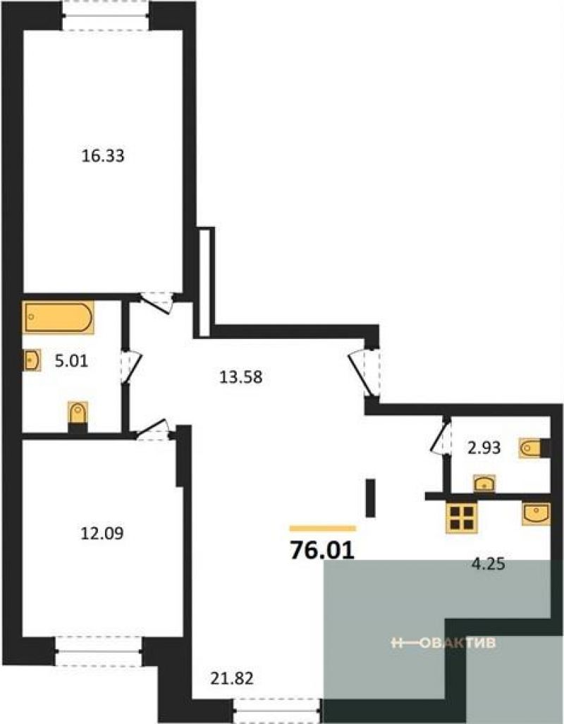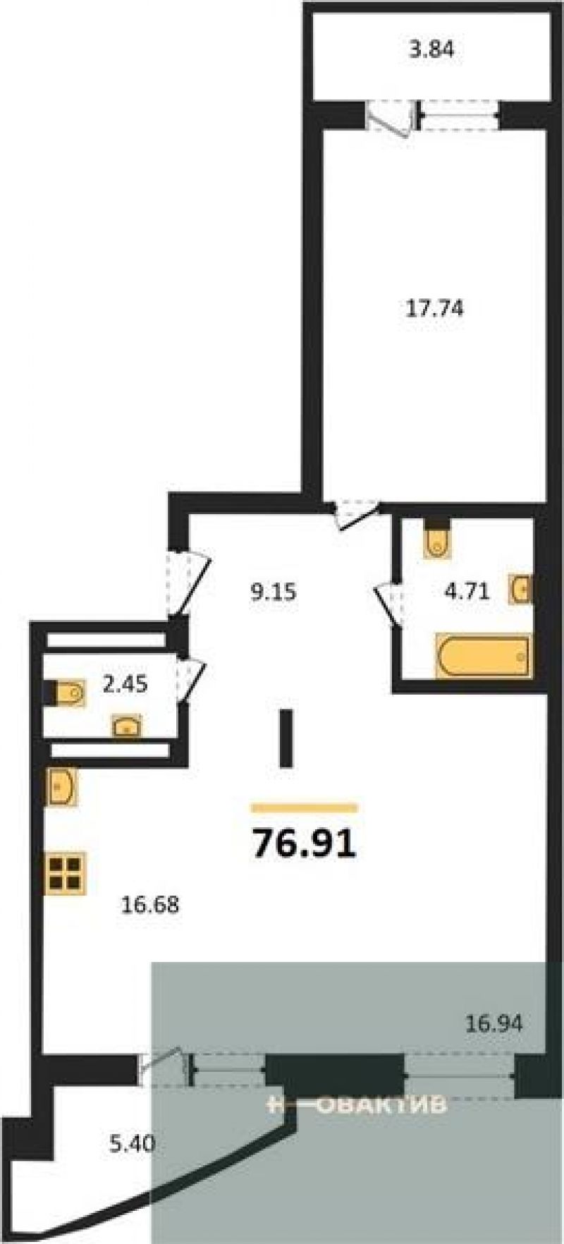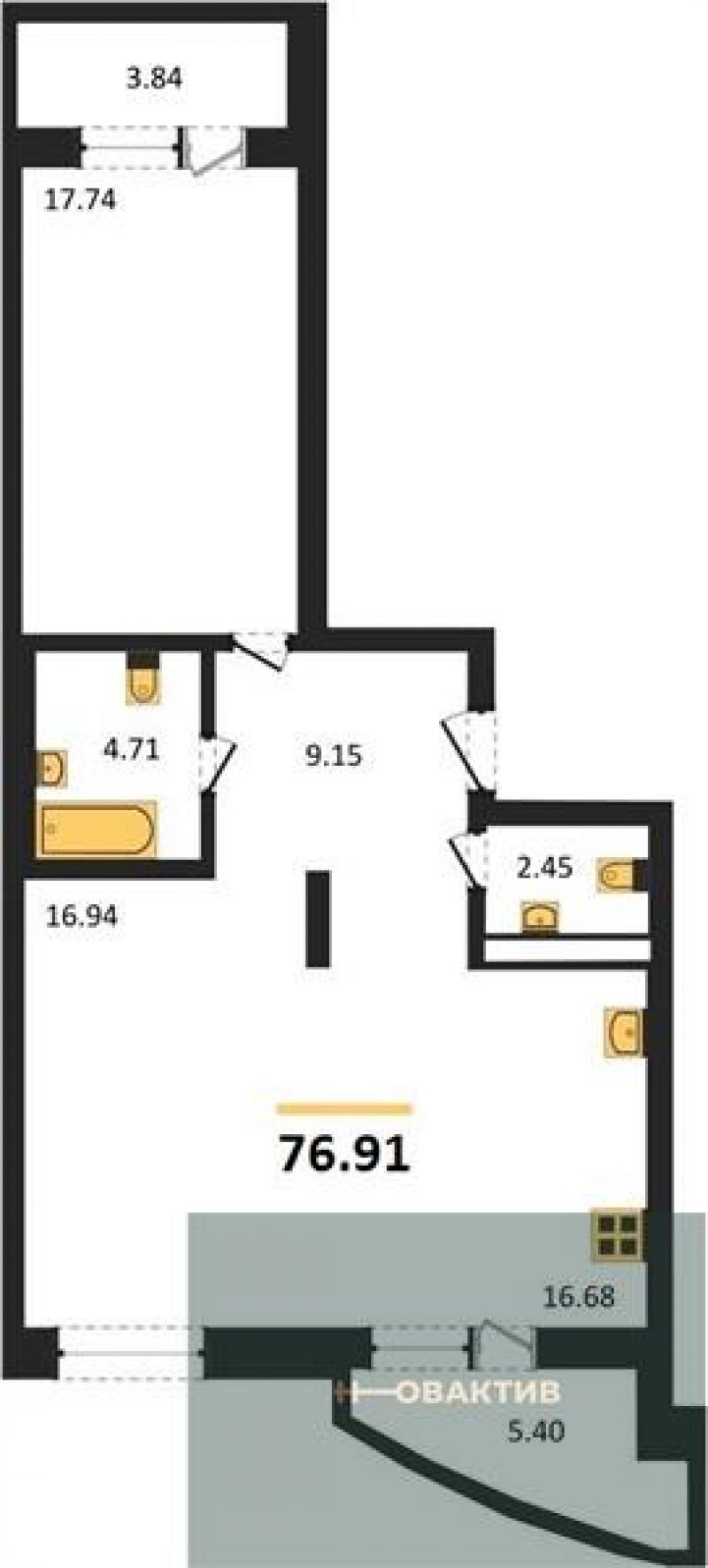 - Общая площадь 76.91 м²