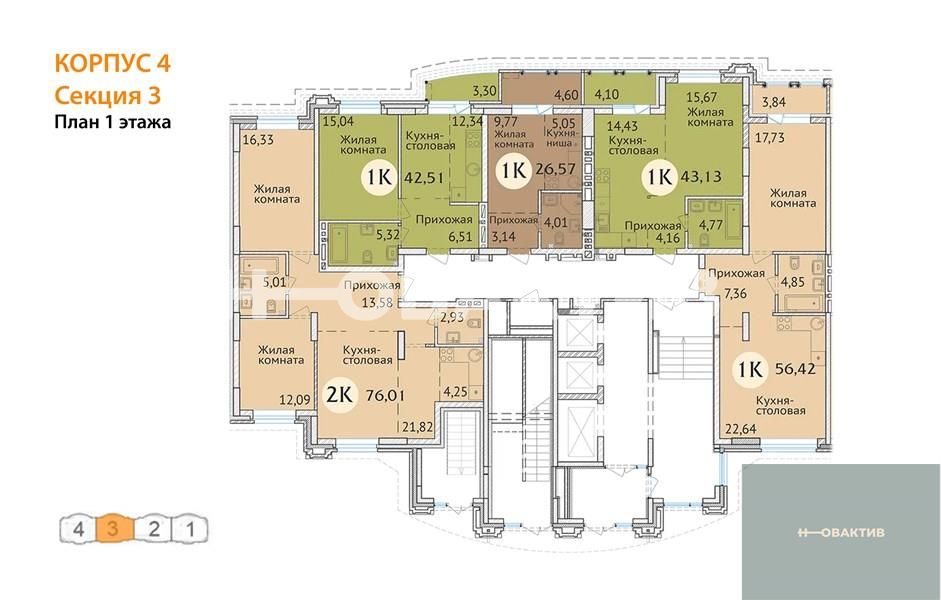 Квартира: 1 к 52,55 кв.м., 21 этаж в комплексе Заельцовский New, 3 очередь, корп.4, сдача: 4кв. , этажей: 23, адрес Новосибирск г., Дуси Ковальчук ул., д. 248/1, Застройщик: Сибирь Девелопмент. Квартиры бизнес-класса для комфортной семейной жизни. Комплекс располагается поблизости от станции метро Заельцовская, площади Калинина и Красного проспекта, что позволяет жильцам легко и быстро добраться до любой точки города. Закрытая территория и уютный двор бережно охраняют частную жизнь. Респектабельная «московская» архитектура, плавные линии фасада и облицовка высококачественным кирпичом делают здание настоящим украшением района. В шаговой доступности от ЖК находятся гимназия, лицей, общеобразовательные и частные школы, детские сады, поликлиника, фитнес-центры, торгово-развлекательные центры, а также крупные зелёные зоны. Любителей природы порадует близкое соседство с самым крупным парком города - Заельцовским парком. Его территория в настоящий момент включает более 35 га лесных насаждений и уютных полян, где можно наслаждаться чистым воздухом и заниматься спортом в любое время года. Семьи с детьми, без сомнения, оценят возможность за 15 минут добраться до одной из крупнейших достопримечательностей города – Новосибирского Зоопарка, который является домом для более 10 тысяч животных. Рядом находится ещё одно великолепное место для семейных прогулок - Дендропарк. Безопасность и комфорт детей и взрослых – главное, что учитывалось при благоустройстве жилого комплекса. Закрытая охраняемая территория, двор без машин, максимум зелени, игровые и спортивные площадки с мягким покрытием, дорожки из террасной доски обеспечивают жителям ЖК возможности для спокойного и активного отдыха в стороне от городской суеты. Автомобили располагаются на двухуровневой подземной парковке на 195 машиномест. Имеются отдельные гаражные боксы. Квартиры в жилом комплексе отличаются разнообразием планировок (от однокомнатной студии до большой четырёхкомантной квартиры), просторными комнатами и большими кухнями. Все внутренние решения нацелены на создание максимально светлого пространства: большие плоскости остекления, панорамные окна, эркеры, позволяющие воплощать оригинальные дизайнерские идеи. Удобные планировки квартир, просторные лоджии, единая система видеонаблюдения, кладовые помещения для жильцов, собственная управляющая компания – в ЖК созданы все условия для комфорта и благополучия жильцов. Дом оснащён бесшумными скоростными лифтами от квартиры до парковки, современными системами отопления и противопожарным оборудованием. На первом этаже жилого комплекса располагаются коммерческие помещения семейного формата: развивающие студии для малышей, салоны красоты и магазины для взрослых, а также уютные кафе, где можно приятно провести время с друзьями и близкими. Для удобства жильцов и посетителей бизнес-зоны жилого комплекса построен дополнительный «карман», который делает доступным подъезд и парковку у офисов и магазинов. Все входы в коммерческие помещения отделены от жилой зоны и располагаются со стороны улицы Дуси Ковальчук.