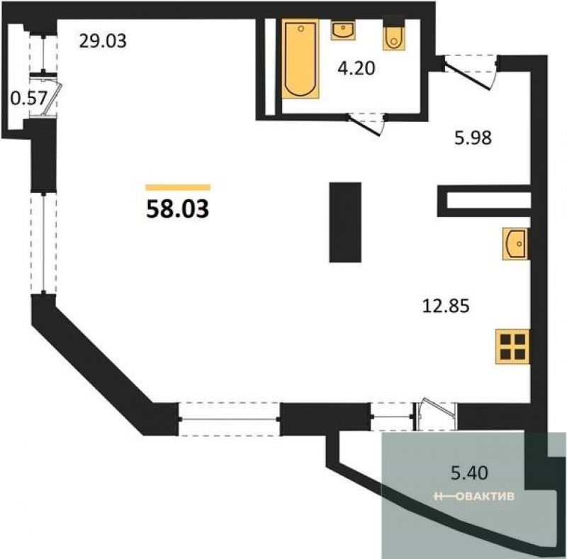 - Общая площадь 58.03 м²