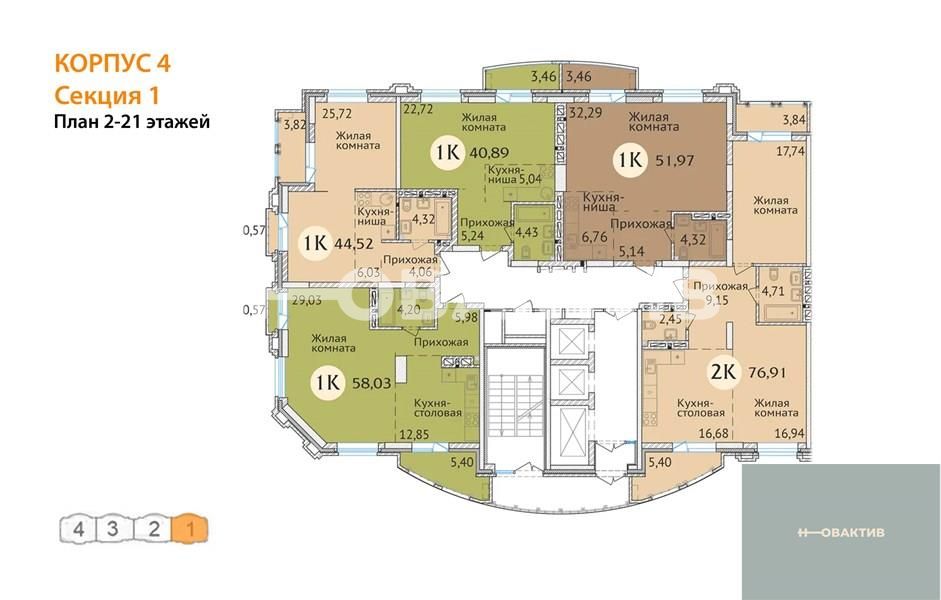 Квартира: 1 к 40,89 кв.м., 21 этаж в комплексе Заельцовский New, 3 очередь, корп.4, сдача: 4кв. , этажей: 23, адрес Новосибирск г., Дуси Ковальчук ул., д. 248/1, Застройщик: Сибирь Девелопмент. Квартиры бизнес-класса для комфортной семейной жизни. Комплекс располагается поблизости от станции метро Заельцовская, площади Калинина и Красного проспекта, что позволяет жильцам легко и быстро добраться до любой точки города. Закрытая территория и уютный двор бережно охраняют частную жизнь. Респектабельная «московская» архитектура, плавные линии фасада и облицовка высококачественным кирпичом делают здание настоящим украшением района. В шаговой доступности от ЖК находятся гимназия, лицей, общеобразовательные и частные школы, детские сады, поликлиника, фитнес-центры, торгово-развлекательные центры, а также крупные зелёные зоны. Любителей природы порадует близкое соседство с самым крупным парком города - Заельцовским парком. Его территория в настоящий момент включает более 35 га лесных насаждений и уютных полян, где можно наслаждаться чистым воздухом и заниматься спортом в любое время года. Семьи с детьми, без сомнения, оценят возможность за 15 минут добраться до одной из крупнейших достопримечательностей города – Новосибирского Зоопарка, который является домом для более 10 тысяч животных. Рядом находится ещё одно великолепное место для семейных прогулок - Дендропарк. Безопасность и комфорт детей и взрослых – главное, что учитывалось при благоустройстве жилого комплекса. Закрытая охраняемая территория, двор без машин, максимум зелени, игровые и спортивные площадки с мягким покрытием, дорожки из террасной доски обеспечивают жителям ЖК возможности для спокойного и активного отдыха в стороне от городской суеты. Автомобили располагаются на двухуровневой подземной парковке на 195 машиномест. Имеются отдельные гаражные боксы. Квартиры в жилом комплексе отличаются разнообразием планировок (от однокомнатной студии до большой четырёхкомантной квартиры), просторными комнатами и большими кухнями. Все внутренние решения нацелены на создание максимально светлого пространства: большие плоскости остекления, панорамные окна, эркеры, позволяющие воплощать оригинальные дизайнерские идеи. Удобные планировки квартир, просторные лоджии, единая система видеонаблюдения, кладовые помещения для жильцов, собственная управляющая компания – в ЖК созданы все условия для комфорта и благополучия жильцов. Дом оснащён бесшумными скоростными лифтами от квартиры до парковки, современными системами отопления и противопожарным оборудованием. На первом этаже жилого комплекса располагаются коммерческие помещения семейного формата: развивающие студии для малышей, салоны красоты и магазины для взрослых, а также уютные кафе, где можно приятно провести время с друзьями и близкими. Для удобства жильцов и посетителей бизнес-зоны жилого комплекса построен дополнительный «карман», который делает доступным подъезд и парковку у офисов и магазинов. Все входы в коммерческие помещения отделены от жилой зоны и располагаются со стороны улицы Дуси Ковальчук.