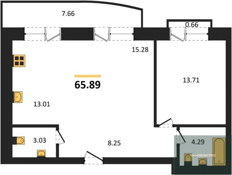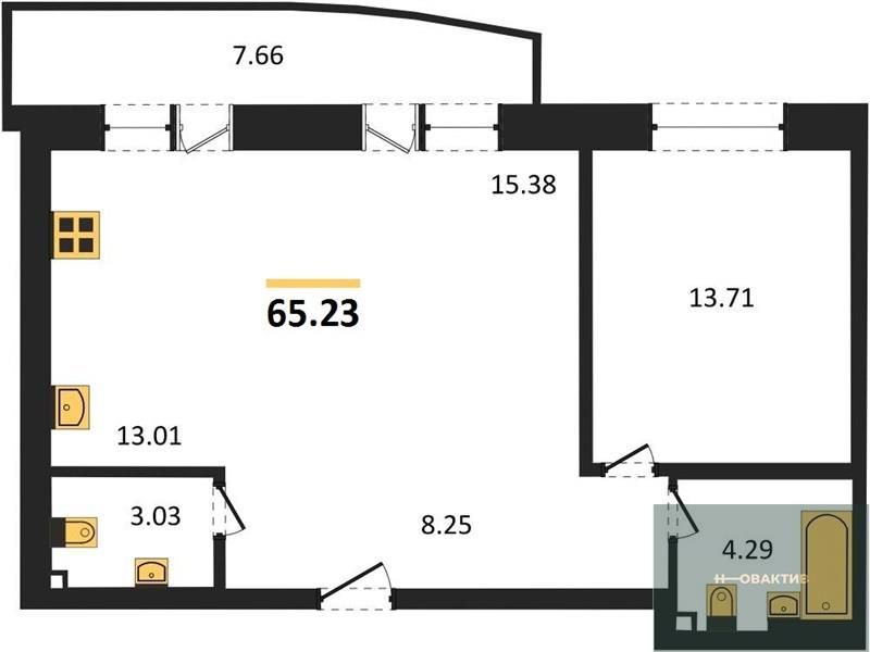- Жилая площадь 65.11 м²