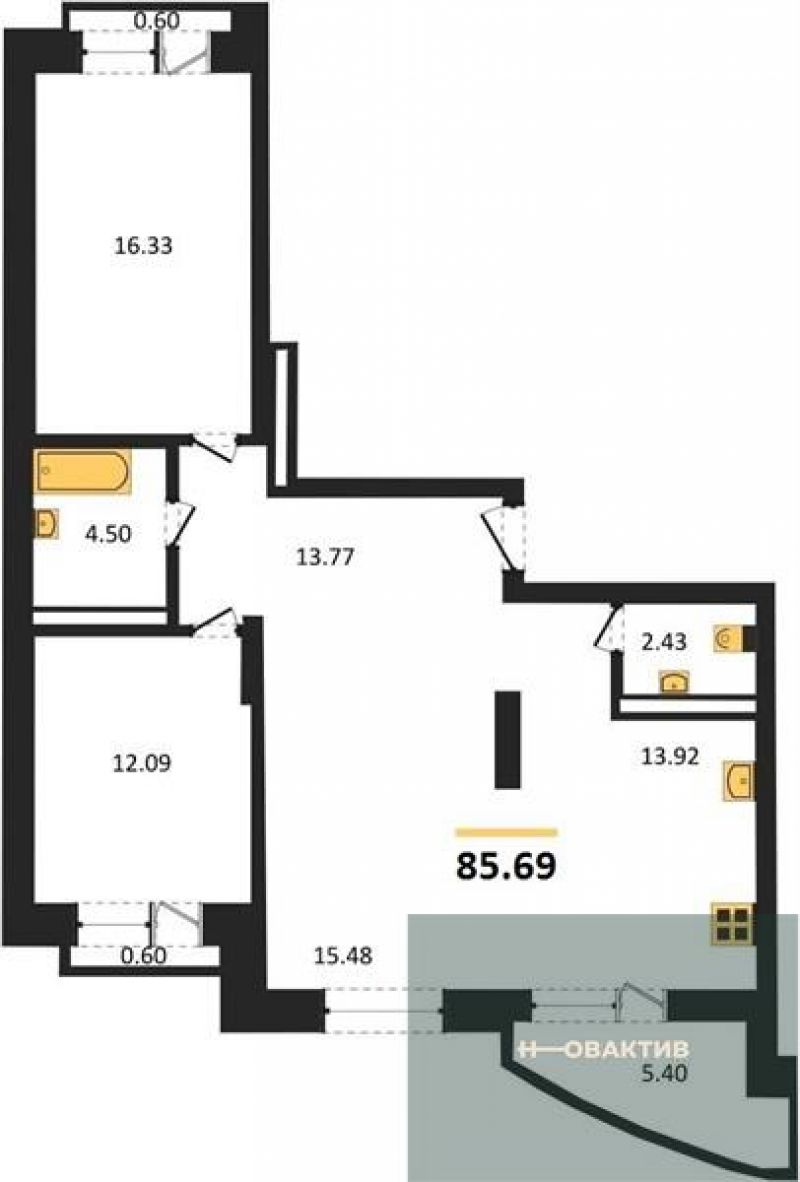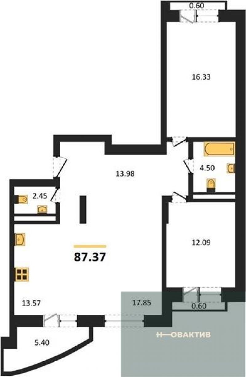 Расcчитать ипотеку№405 2-к.квартира, 77.96 м², 16 эт.