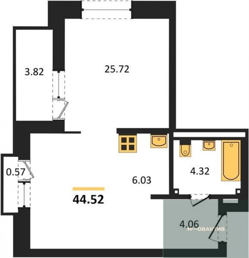 - Общая площадь 44.52 м²