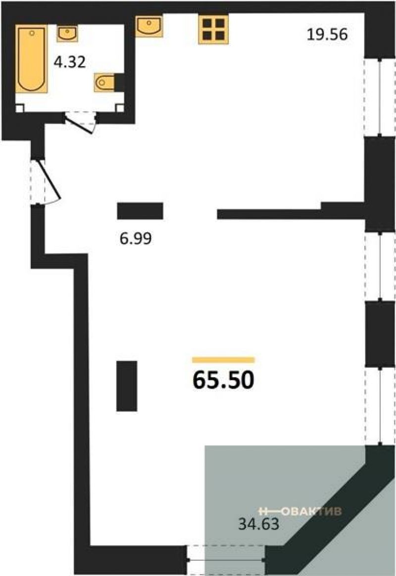 - Жилая площадь 34.68 м²