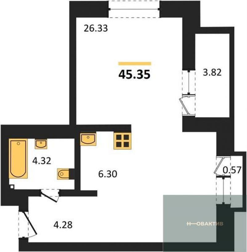 - Общая площадь 45.35 м²