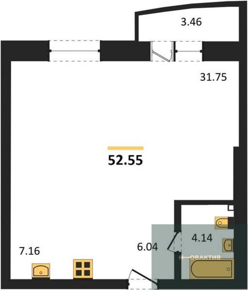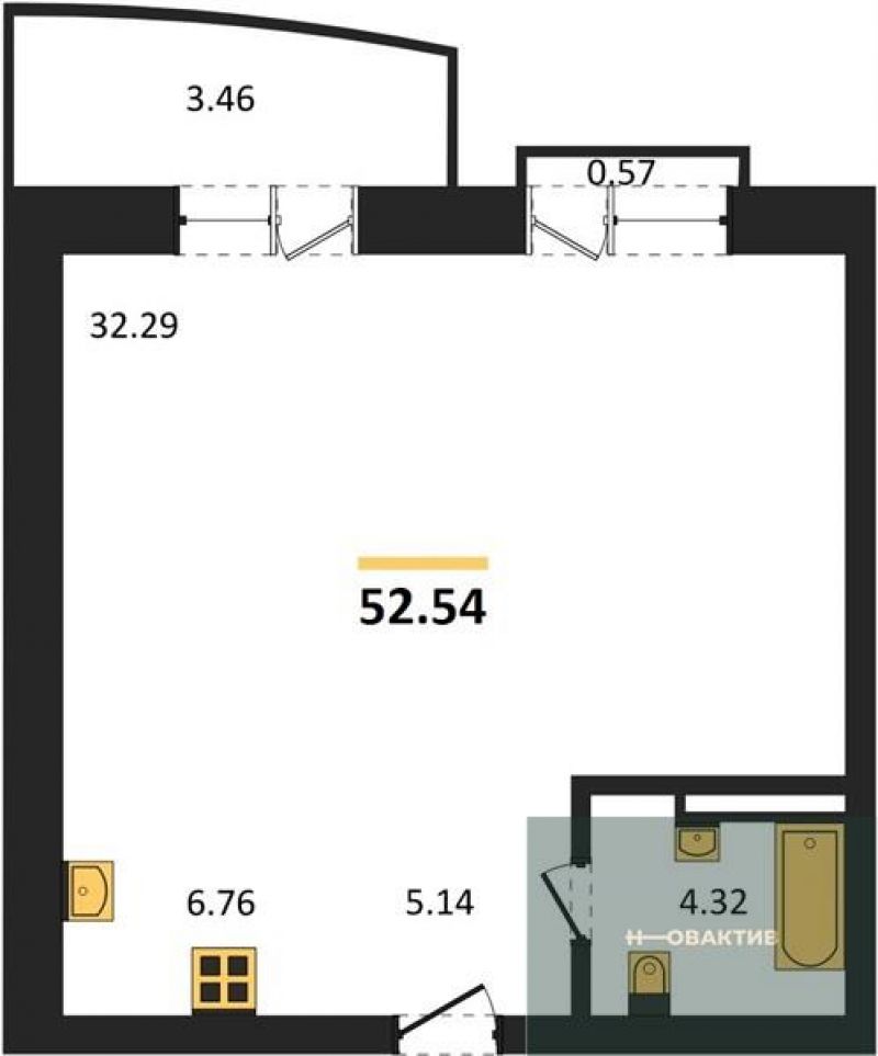 - Общая площадь 52.54 м²