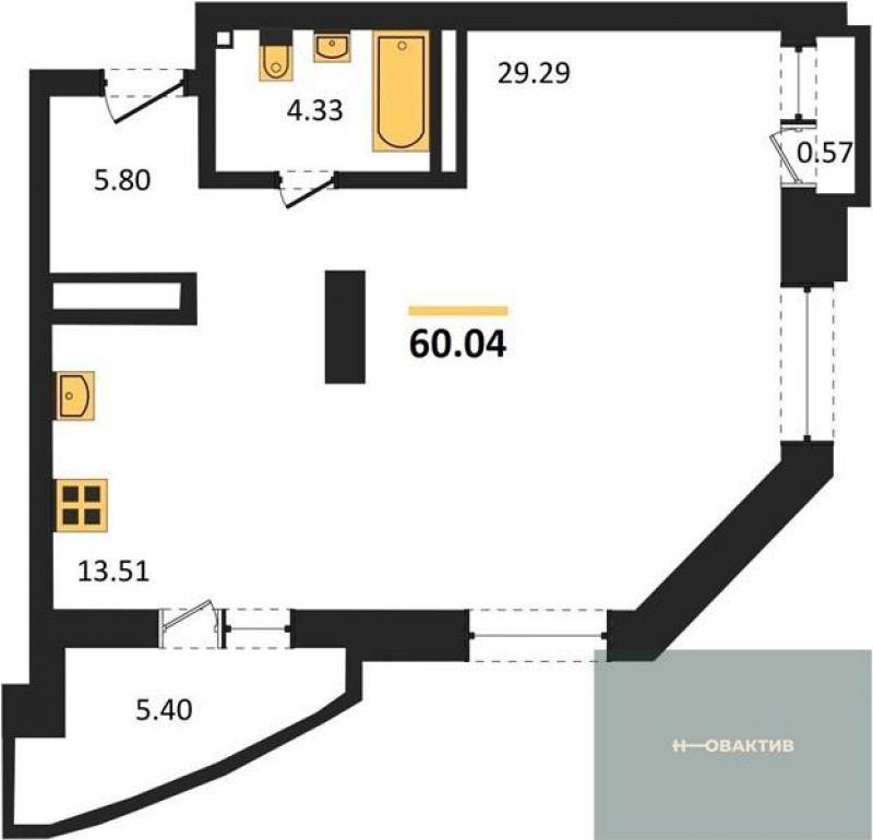 - Общая площадь 60.04 м²