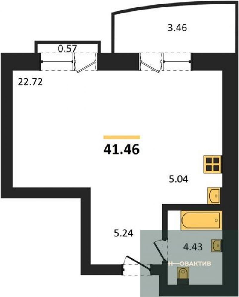 - Общая площадь 41.46 м²