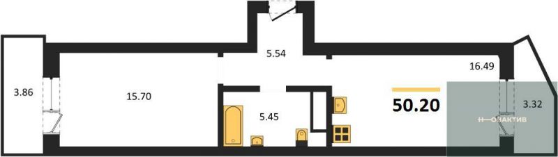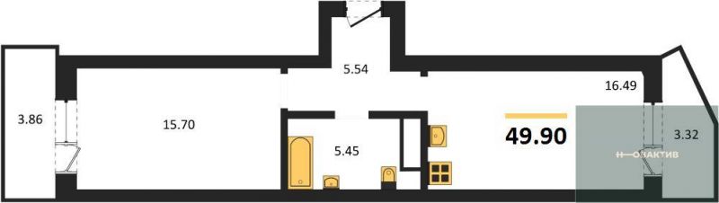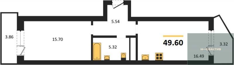 Расcчитать ипотеку№351 1-к.квартира, 49.6 м², 15 эт.
