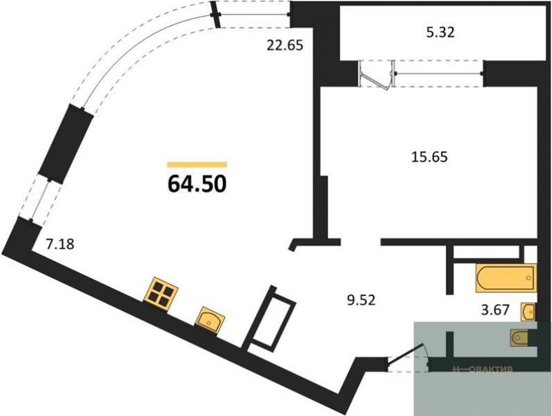 №171 1-к.квартира, 64.5 м², 2 эт.