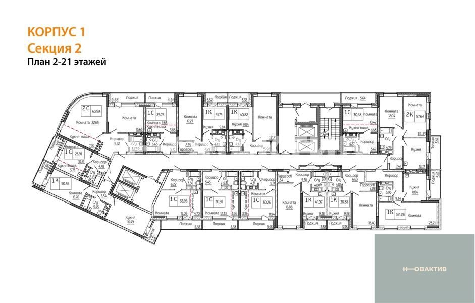 Квартира: 1 к 50,20 кв.м., 18 этаж в комплексе Сакура парк, 1 очередь, корп.1 (секция 2), сдача: 2кв. , этажей: 25, адрес Новосибирск г., Ипподромская ул., д. 12, Застройщик: Расцветай. Жилой комплекс – это квартал из трех 25-этажных домов комфорт-класса, расположенный в новом центре, в шаговой доступности от станции метро «Октябрьская». Камерное благоустройство каждого двора соседствует с зеленым парком «Аллея городов». Освещение территории, тихий приватный двор, доступная центральная инфраструктура и транспортные развязки формируют комфортные условия для жизни. А ближайшее расположение центра Сибирь-Хоккайдо позволяет окунуться в философию и культуру Японии и разнообразить свой досуг. Большой торгово-развлекательный центр «Аура» находится непосредственно рядом с комплексом, буквально в 5 минутах ходьбы. Более 100 магазинов, детский развлекательный центр, рестораны, фуд-корт и многозальный кинотеатр. Концепция благоустройства, разработанная дизайнерским бюро, отвечает всем запросам современного городского жителя. Соседство с зеленым парком, спортивные и детские площадки, уютные места для отдыха— все, что нужно для комфорта вашей жизни. Квартал - это воплощение комфорта и сбалансированной жизни в тандеме с природой. За время существования района здесь сформировалась развитая инфраструктура, есть все необходимое в шаговой доступности: зеленые скверы, супермаркеты, медицинские центры, премиум фитнес-центры, детские сады и школы. В пределах квартала находятся: центр Сибирь-Хоккайдо с клубом японских единоборств, центрами изучения японского и корейского языков, и мероприятиями посвященными японской культуре. Для автомобилей предусмотрен подземный трехуровневый паркинг на 664 места, связанный с лифтами. Здесь особое внимание уделено безопасности. Доступ посторонних лиц и случайных автомобилей исключен – управление воротами и шлагбаумами осуществляется брелоками-датчиками владельцев парковочных мест. Паркинг оснащен автоматической установкой пожаротушения, системой противодымной вентиляции, а также предусмотрено видеонаблюдение. На подземном этаже для вашего удобства предусмотрены кладовые для хранения вещей, спуститься к которым можно на лифте. Здесь можно разместить сезонные вещи, автомобильные шины, велосипеды, технику и многое другое.