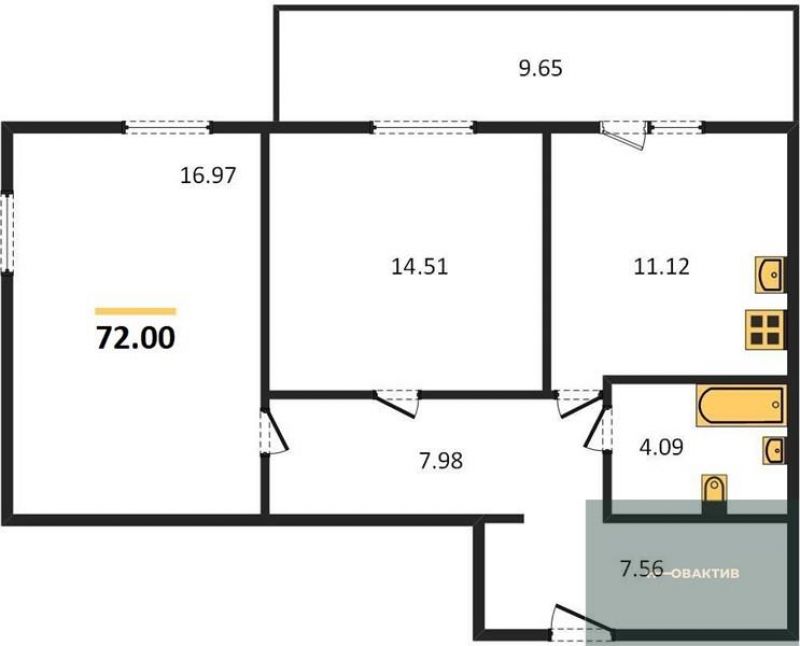 Расcчитать ипотеку№10 2-к.квартира, 72 м², 2 эт.