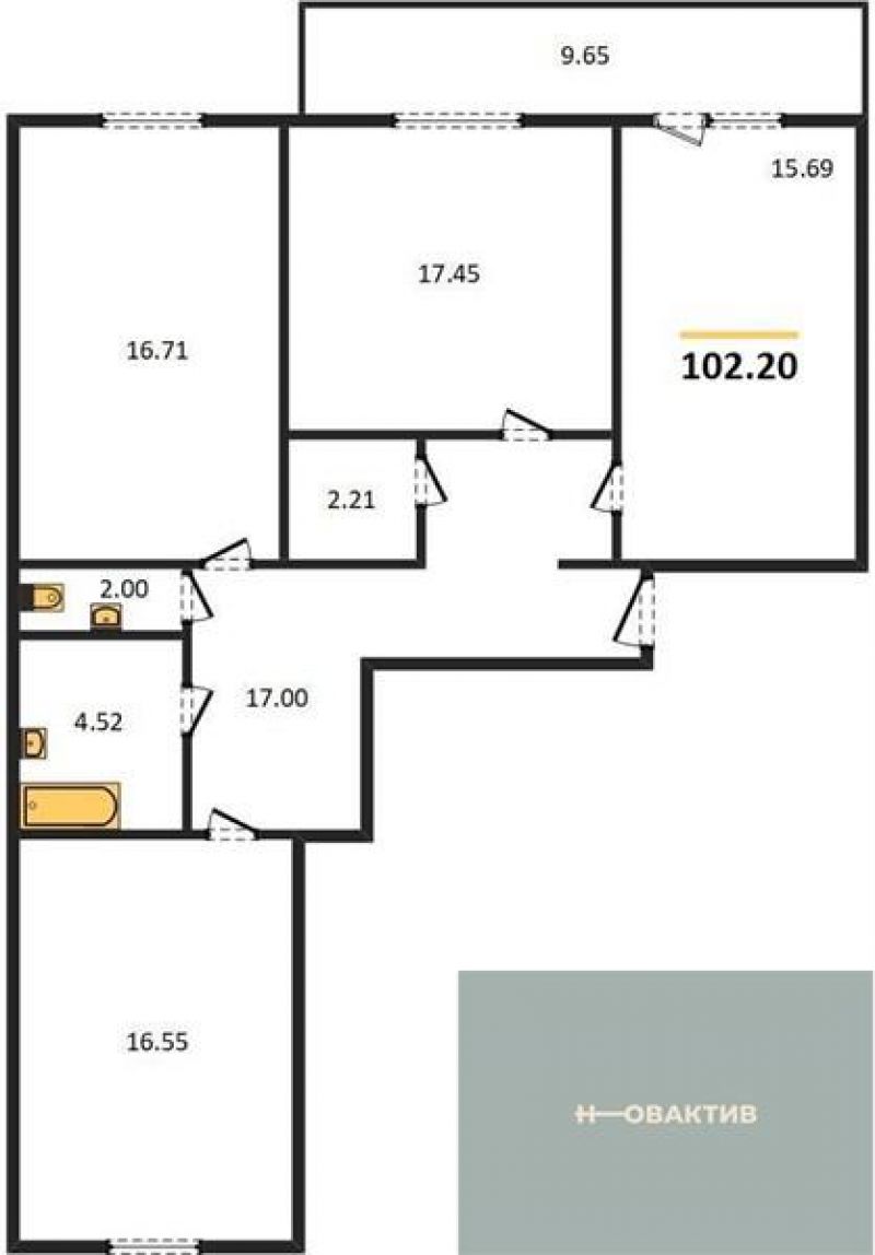 Расcчитать ипотеку№95 3-к.квартира, 102.2 м², 9 эт.