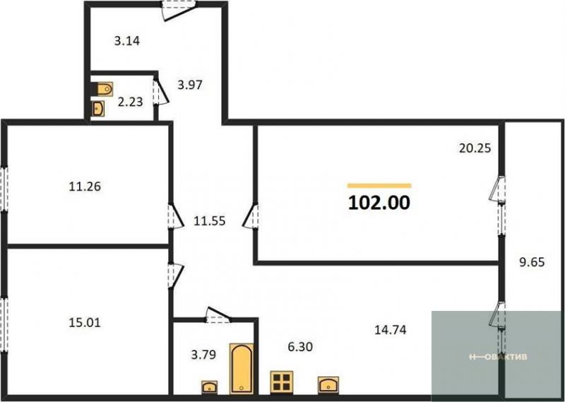 Расcчитать ипотеку№65 3-к.квартира, 102.2 м², 3 эт.