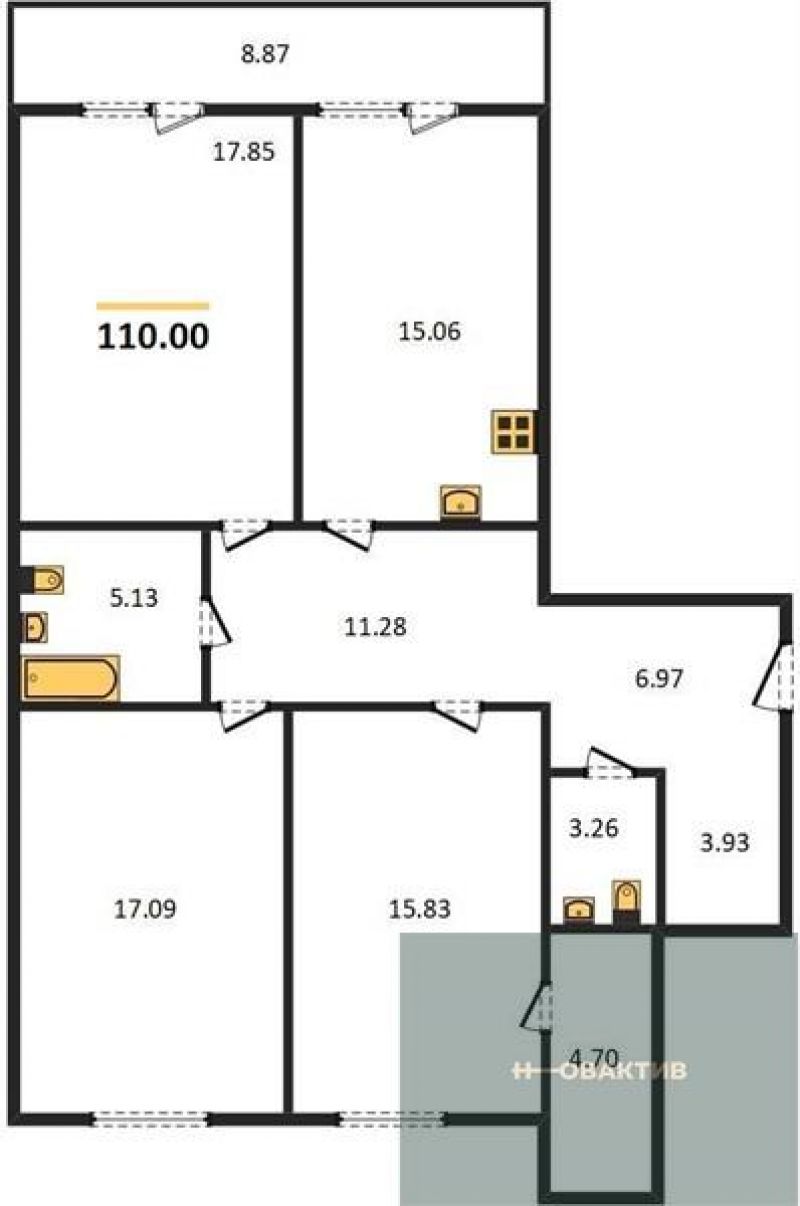 Расcчитать ипотеку№112 3-к.квартира, 110 м², 4 эт.