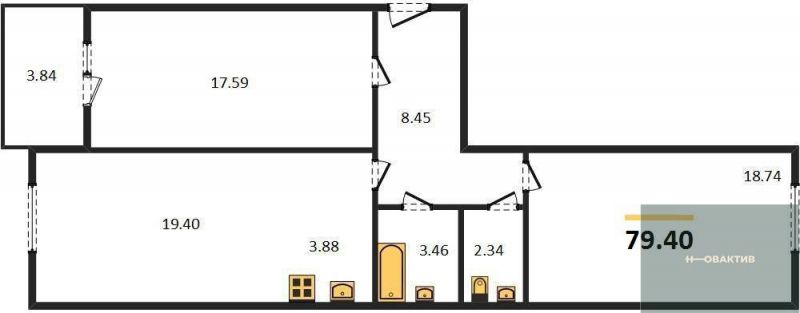 Расcчитать ипотеку№138 2-к.квартира, 79.4 м², 2 эт.