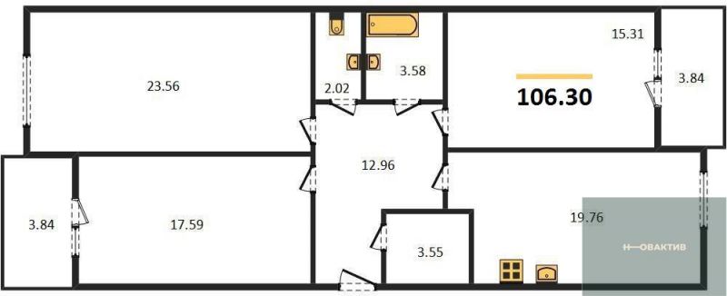 Расcчитать ипотеку№76 3-к.квартира, 105.5 м², 6 эт.