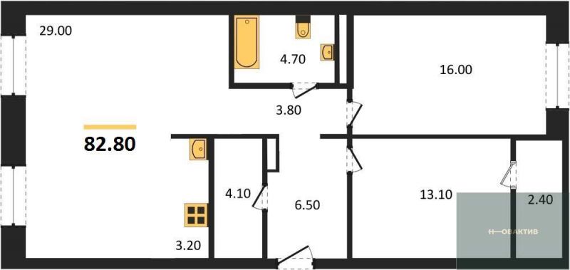 №57 2-к.квартира, 82.8 м², 8 эт.