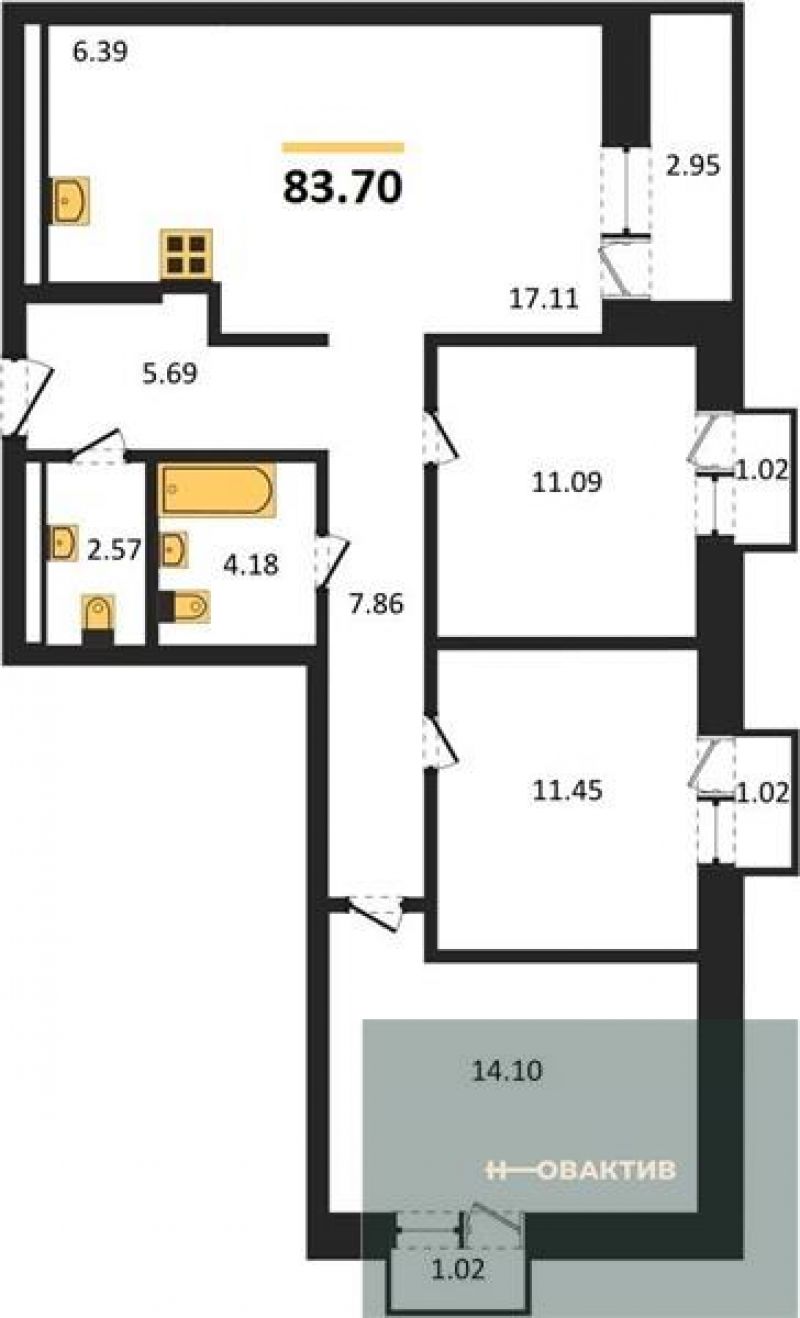 - Общая площадь 83.7 м²