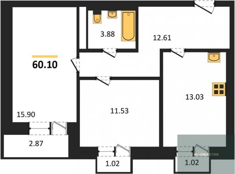 - Общая площадь 60.1 м²