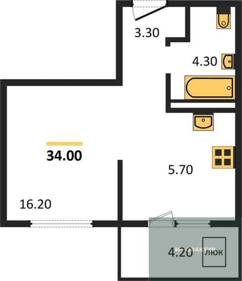 - Общая площадь 34 м²