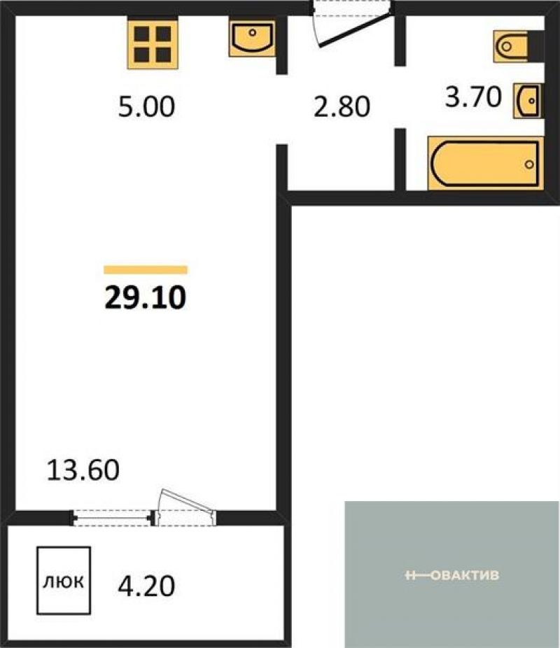 - Общая площадь 29 м²