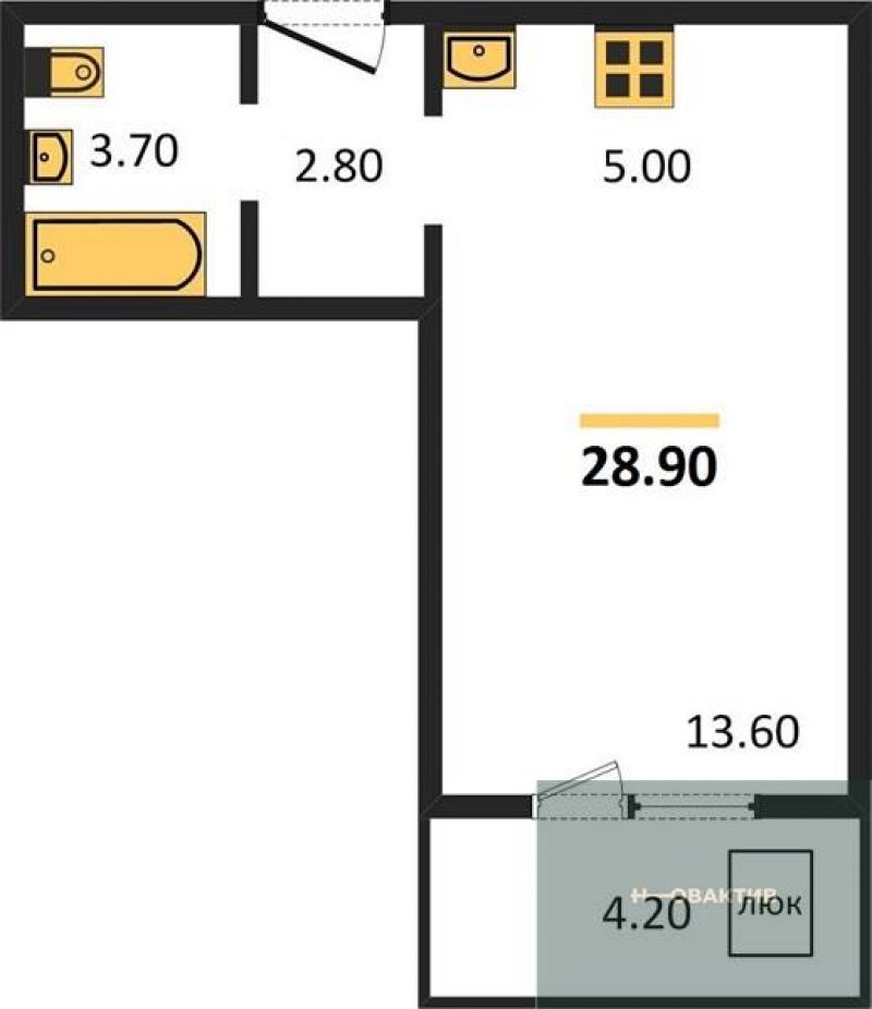 - Общая площадь 28.9 м²