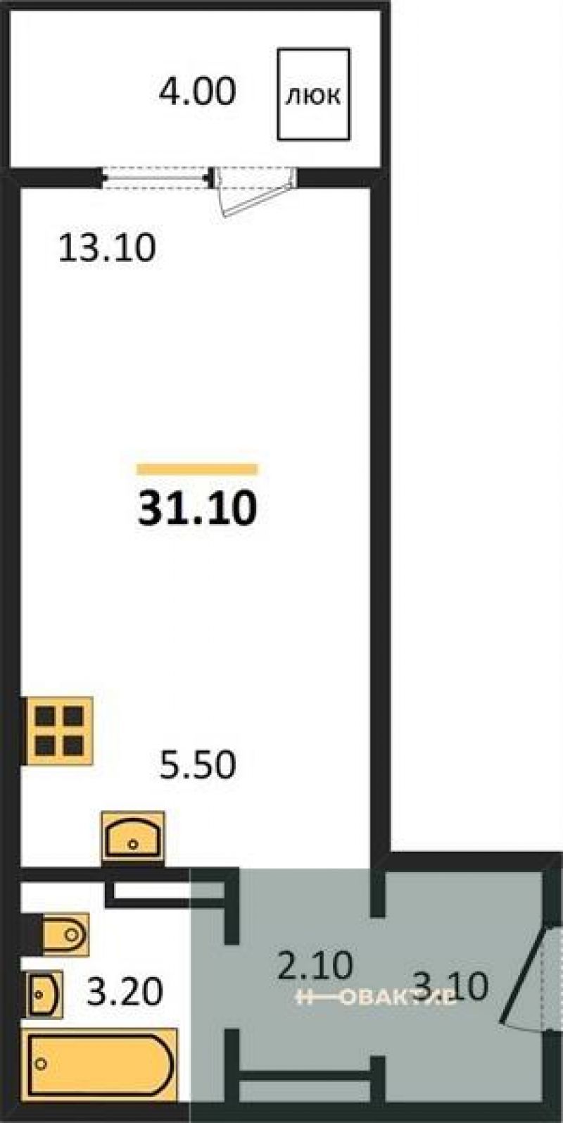 - Общая площадь 31.1 м²
