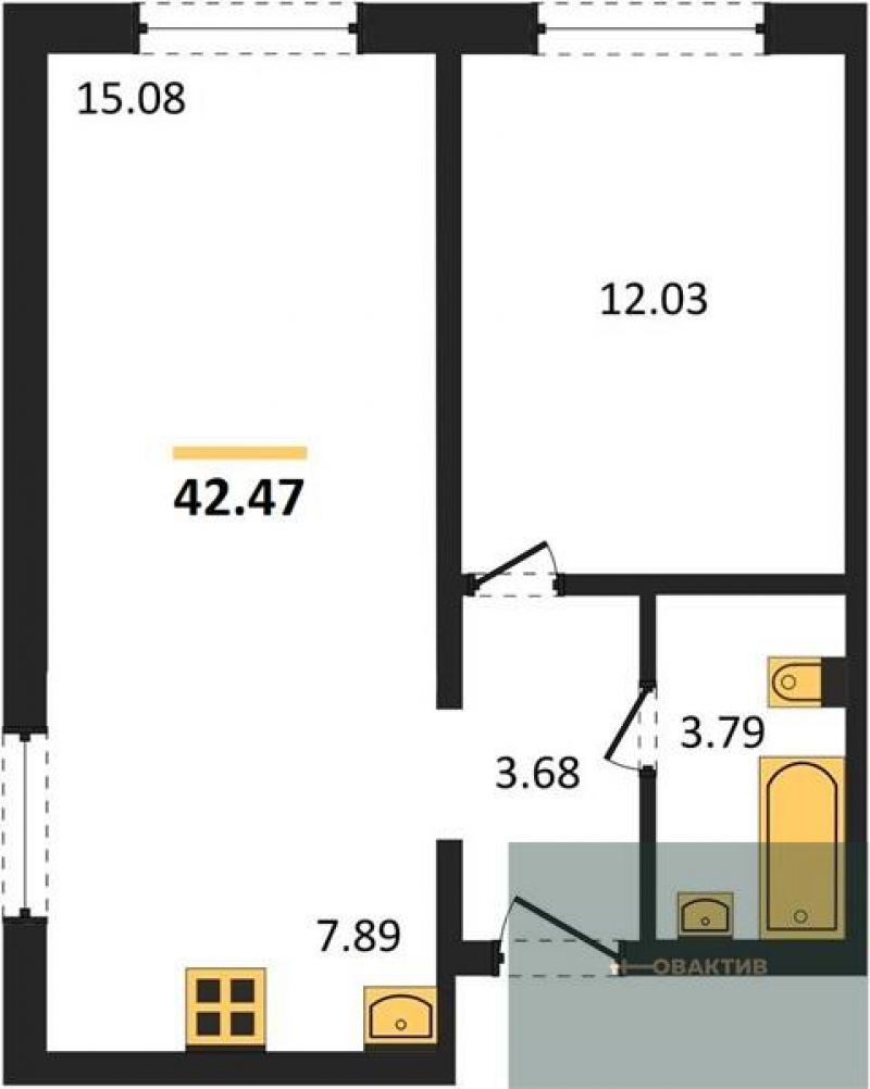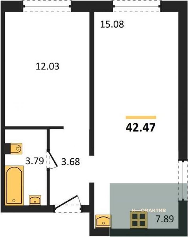 Расcчитать ипотеку№8 2-к.квартира, 42.47 м², 1 эт.